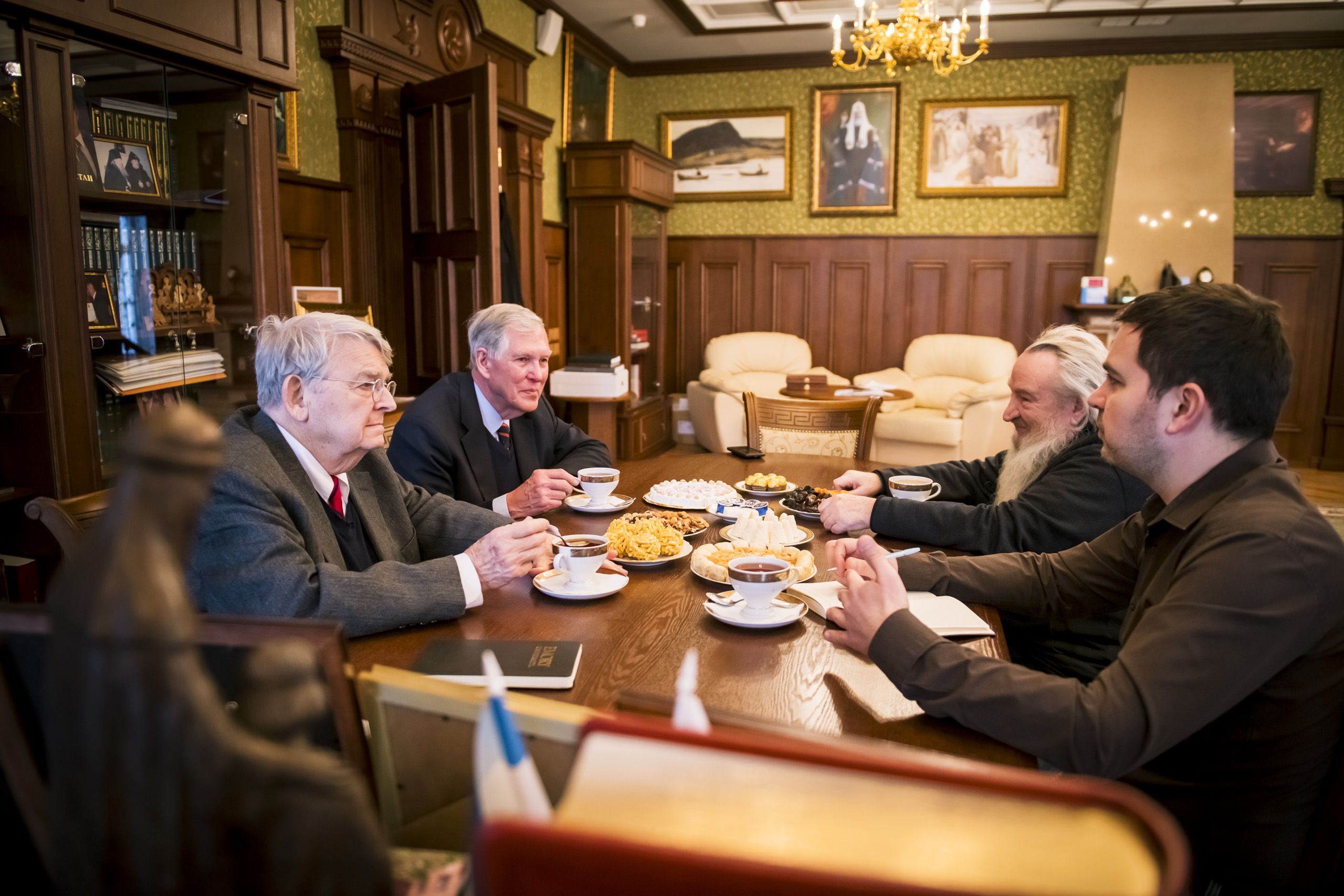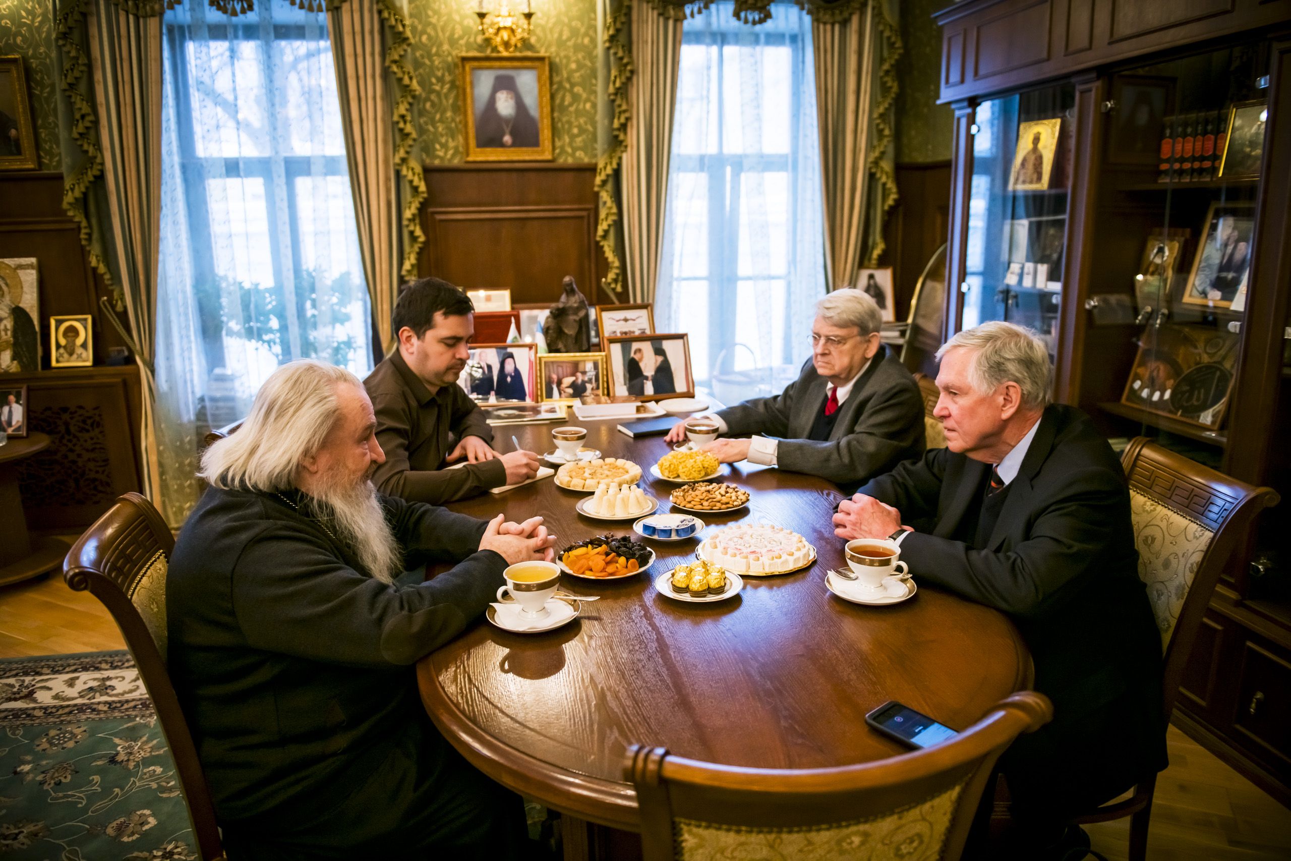 С главой Татарстанской митрополии встретились главный исполнительный директор Программы по борьбе с хроническими заболеваниями Президентского центра Картера (США) профессор Джон Бернет Хардман и директор Глобального центра сотрудничества в области репродуктивного здоровья (штат Джорджия) профессор Альфред Бранн.