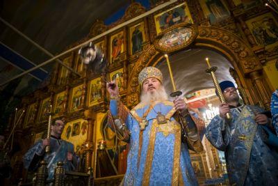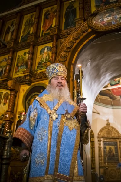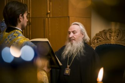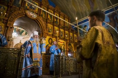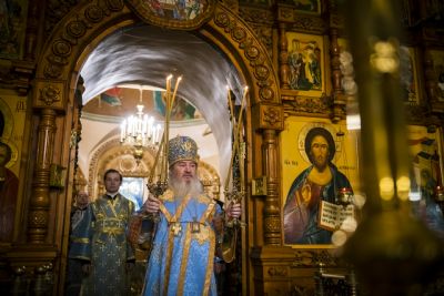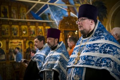 За богослужением Его Высокопреосвященству сослужили настоятель собора протоиерей Сергий Титов и клирики прихода.