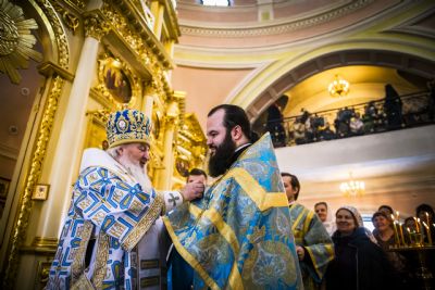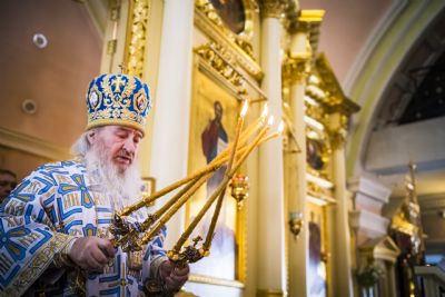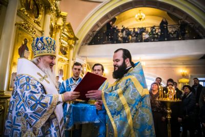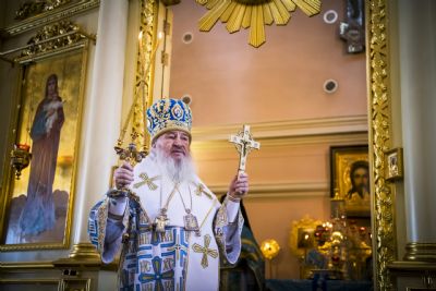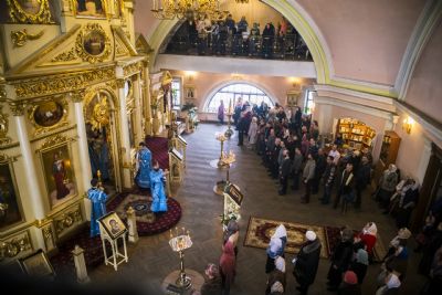 Накануне правящий архиерей возглавил всенощное бдение в Сретенском (нижнем) храме Петропавловского собора города Казани.