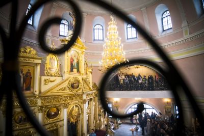 Богослужебные песнопения исполнили архиерейский мужской хор под управлением Дениса Рогова и смешанный — под управлением монахини Амвросии (Кочережкиной).