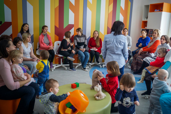 Елена занимается с проживающими в Социальном доме «Колыбель» мамами и детьми, используя методику Ольги Тепляковой.