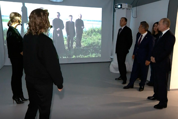 На одной из площадок центра Владимиру Путину и сопровождающему его главе Татарстана Рустаму Минниханову презентовали проекты Фонда поддержки современного искусства «Живой город», главной задачей которого является создание точек культурного притяжения между различными социальными институтами и общественными пространствами.