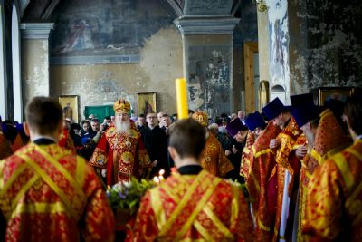 По окончании богослужения глава митрополии поздравил священнослужителей и мирян с церковным торжеством и обратился с архипастырским словом: