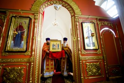 В завершение Литургии на середине храма перед праздничной иконой духовенство и верующие пропели славление священномученику Павлу и его чадам.