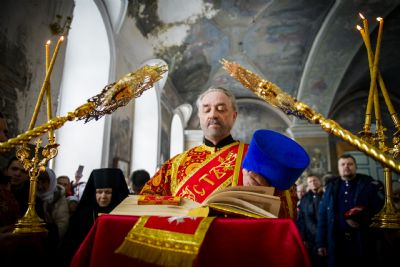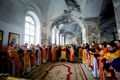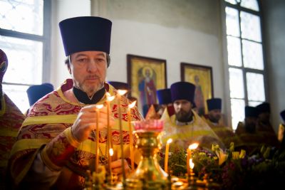 Перед началом Литургии была совершена последняя заупокойная лития по протоиерею Павлу Дернову и его трем сыновьям. На малом входе состоялся чин прославления в лике святых протоиерея Павла Дернова и его сыновей Бориса, Григория и Симеона.