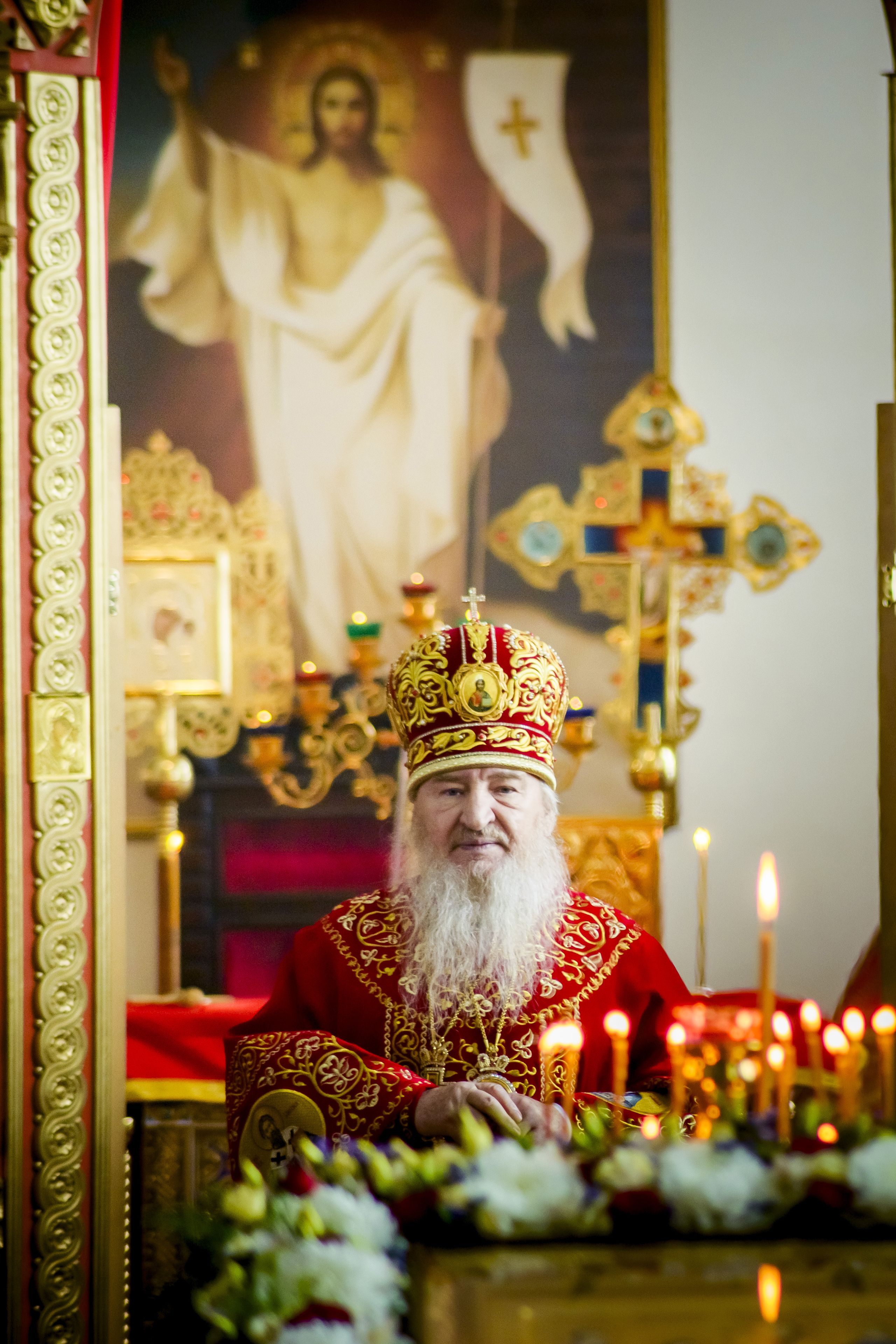 После чтения евангельского зачала Его Высокопреосвященство обратился к молящимся с проповедью.
