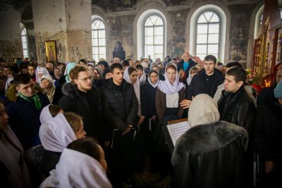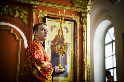Богослужебные песнопения исполнили архиерейский мужской хор под управлением Дениса Рогова и смешанный хор КазДС под управлением Вероники Архиповой.