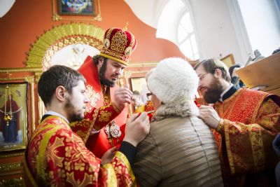 По запричастном стихе протоиерей Алексий Чубаков зачитал житие прославленных святых.