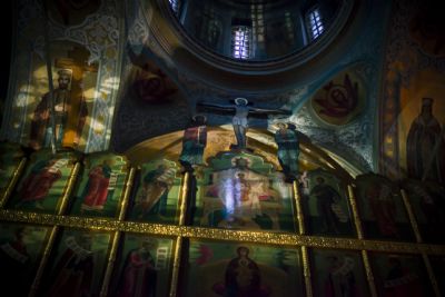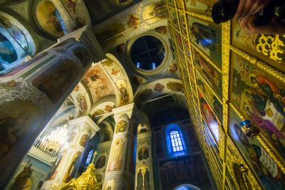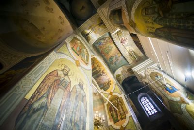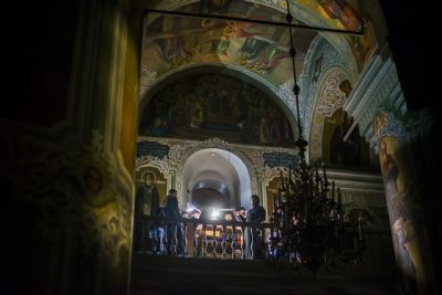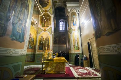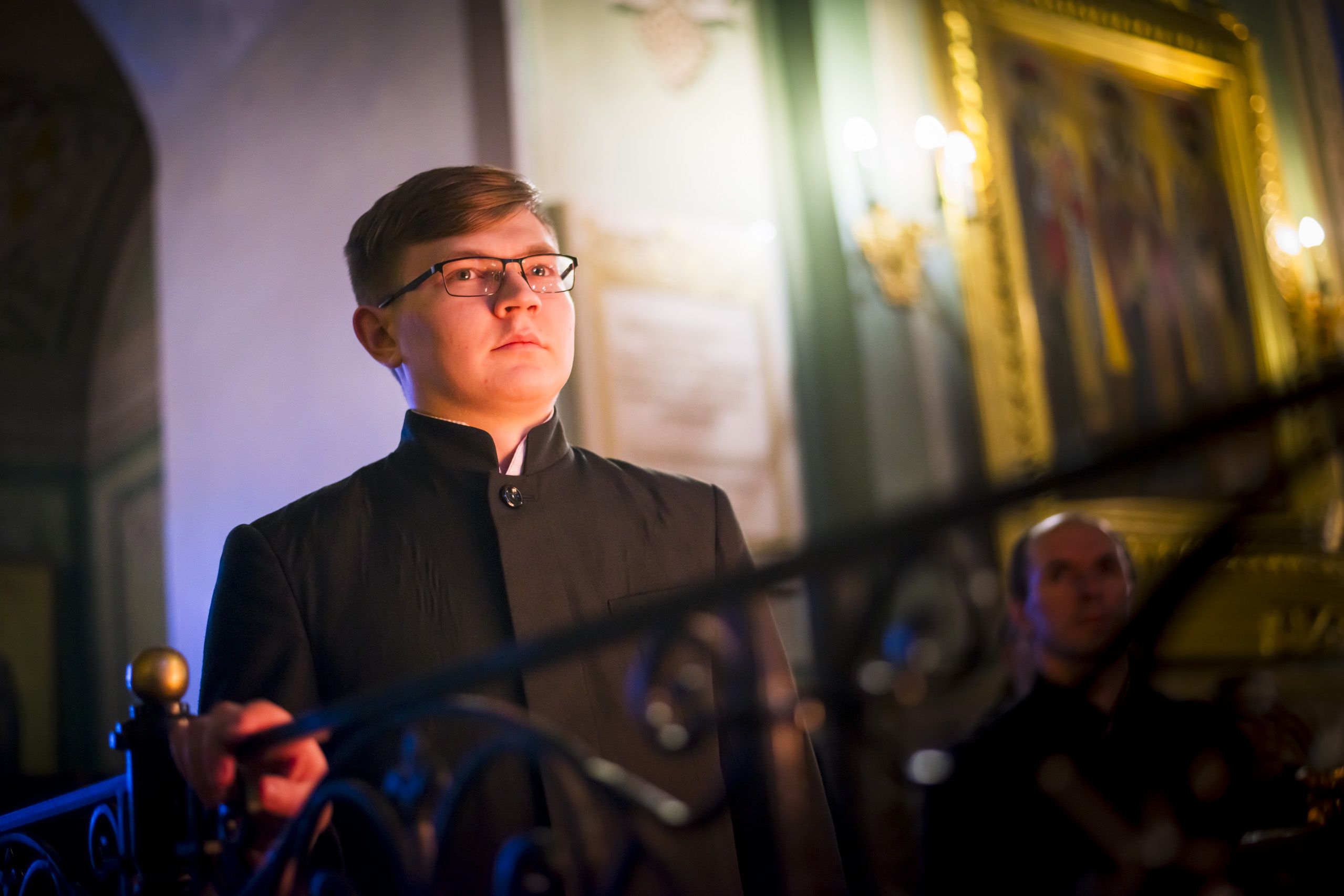 Богослужебные песнопения исполнил архиерейский мужской хор под управлением Дениса Рогова.