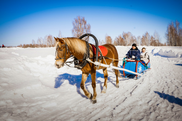 Затем под балалайку руководителя студии «Духов день» Луизы Леонтьевой начались музыкальная и игровая части мероприятия. В это же время дети и взрослые катались с горы на санках и ледянках, а молодежь играла в народные игры. Некоторые катались на санях, запряженных лошадьми.