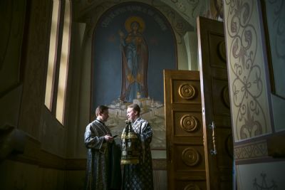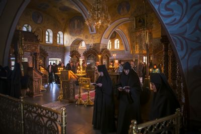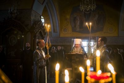 Его Высокопреосвященству сослужили клирики монастыря протоиерей Сергий Дятлов и иерей Владимир Луценко. За богослужением молились настоятельница игумения Сергия (Лакатош) с сестрами и прихожане обители. Песнопения повечерия исполнялись архиерейским мужским хором под управлением Дениса Рогова.