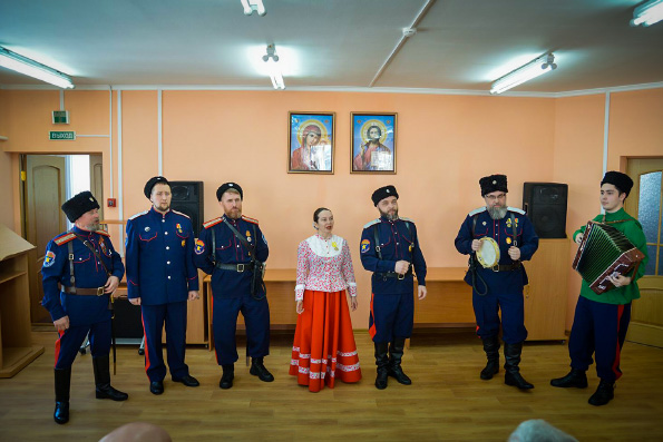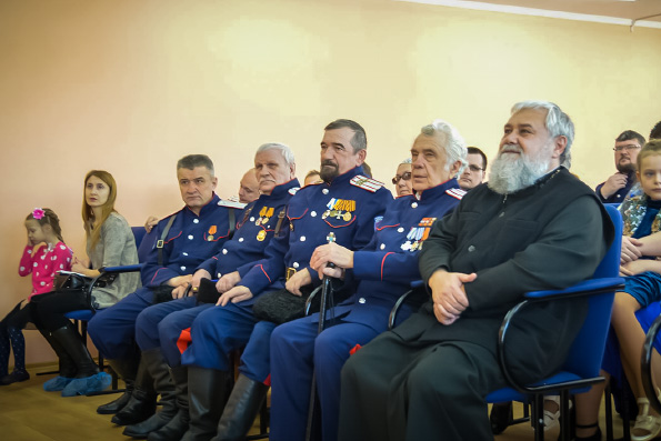 После молебна в актовом зале учебного корпуса архиерейского подворья состоялось торжественное мероприятие. Протоиерей Андрей Дубровин поздравил присутствующих с очередной годовщиной основания хутора Боровецкого.