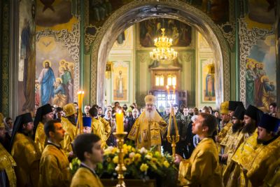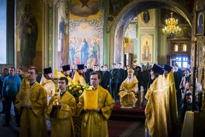 За богослужением молились настоятельница Успенского Зилантова женского монастыря города Казани игумения Сергия (Лакатош), семинаристы, сестры милосердия, прихожане городских храмов.