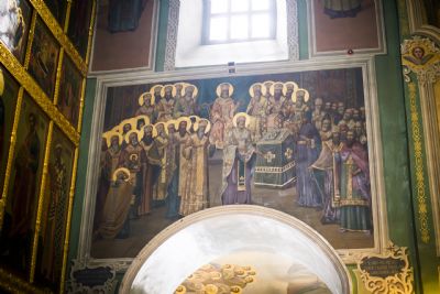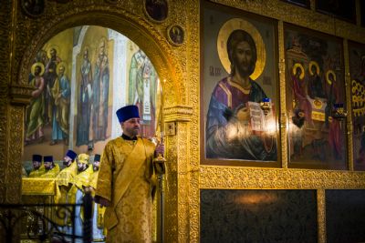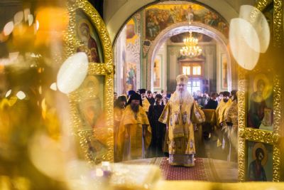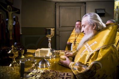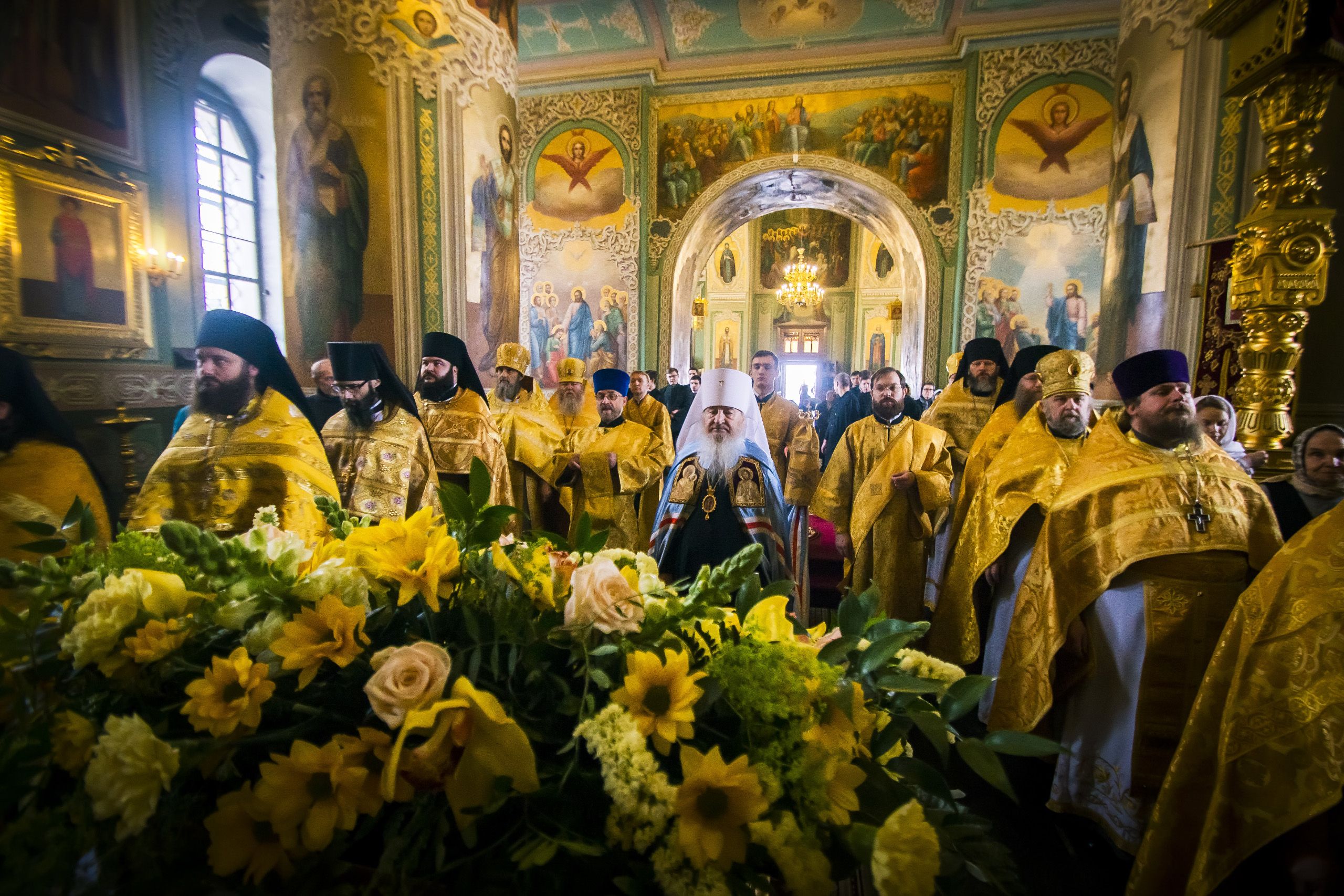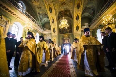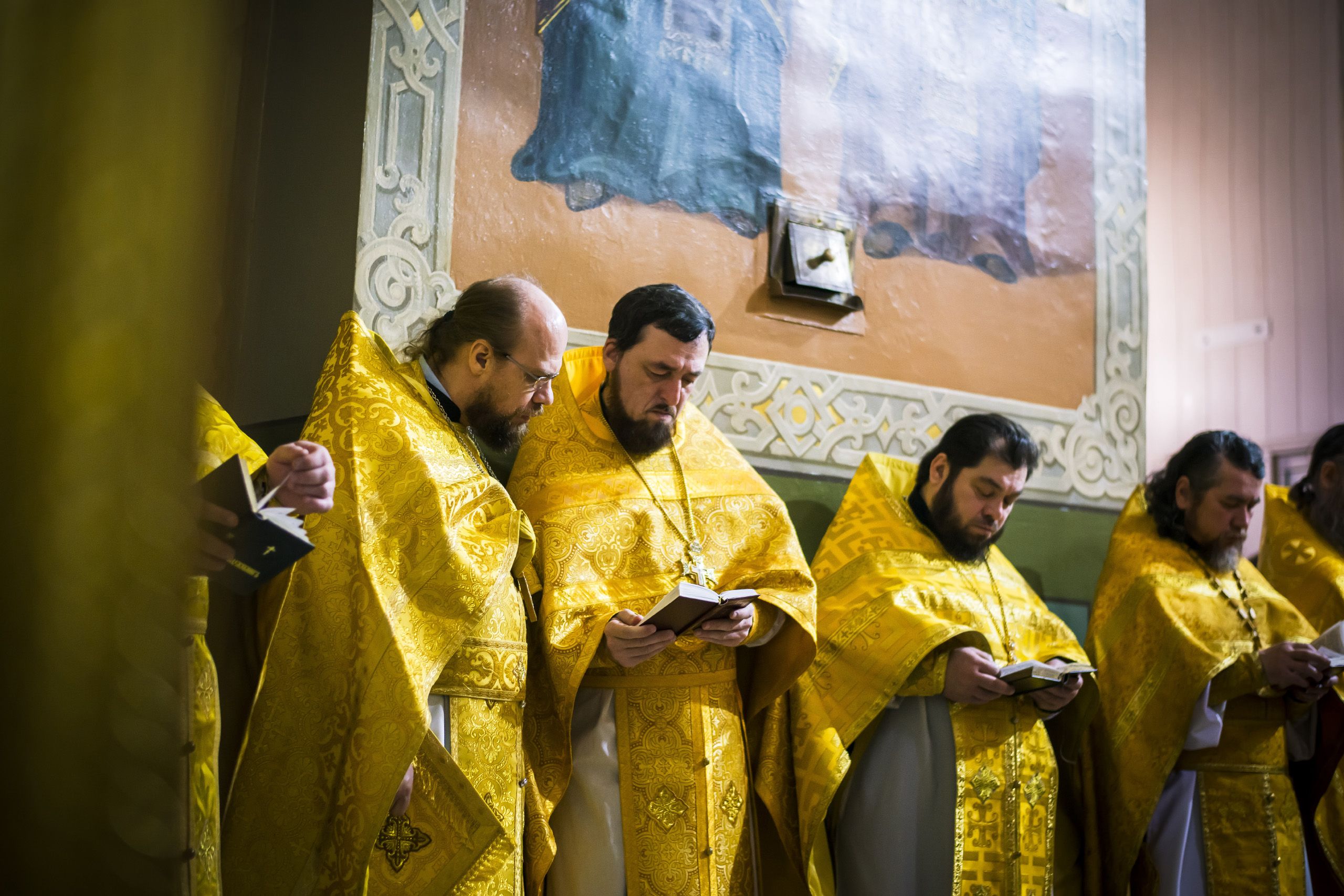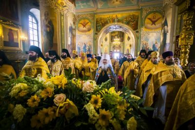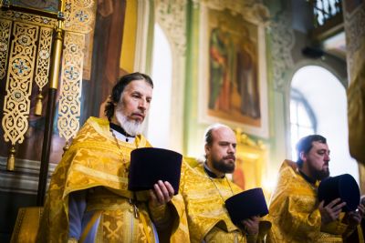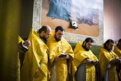 По окончании Литургии на середине храма перед иконами Спасителя и Божией Матери священнослужители совершили последование Недели Православия.