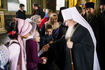 Владыка Феофан преподал верующим архипастырское благословение и раздал детям сладкие гостинцы.