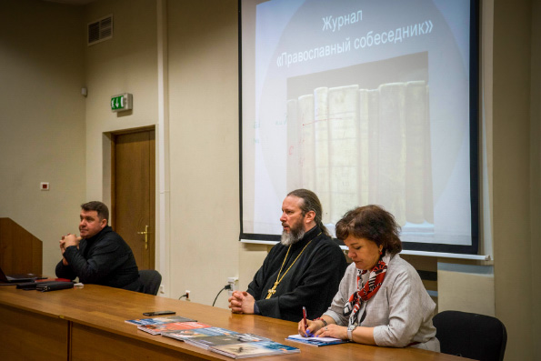 Перейдя к рассказу о журнале «Православный собеседник», отец Евфимий подчеркнул, что во все времена своего существования издание стремилось наладить конструктивный диалог с различными религиозными и светскими движениями. Главный редактор подробно рассказал о важнейших вехах в истории журнала, стремящегося войти в число ведущих православных изданий России.