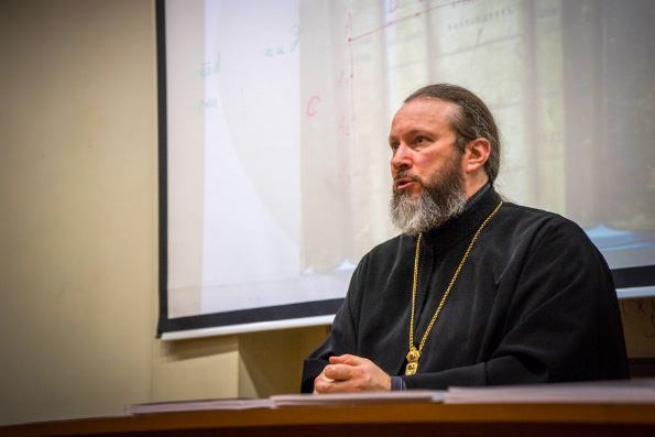 Отец Евфимий начал свое выступление с экскурса в историю духовного образования в России, отметив особое место в системе подготовки богословских кадров Казанской духовной академии, преемницей которой является Казанская духовная семинария. Священнослужитель также поделился со студентами своими мыслями о современном богословском образовании, особо отметив позитивную динамику во взаимодействии Церкви и светских вузов на пути развития интеграции теологического образования в систему светского обучения. По мнению священника, такое сотрудничество призвано подготовить экспертов-религиоведов, которые будут помогать обществу преодолевать те многочисленные вызовы и трудности, которые возникают в современном многоконфессиональном мире, а также изучать опыт всех традиционных конфессий для поддержания межнационального и межрелигиозного равновесия.