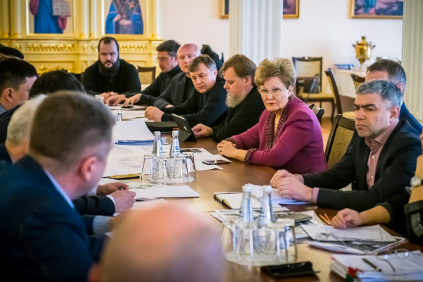 Работу совещания возглавила исполнительный директор республиканского фонда «Возрождение» Татьяна Ларионова. В нем приняли участие председатель Экспертного совета Московского Патриархата по церковному искусству, архитектуре и реставрации протоиерей Леонид Калинин, заместитель председателя Государственного Совета РТ по охране объектов культурного наследия Светлана Персова, главный инженер проекта Казанского собора Вячеслав Нилов, главный архитектор проекта Казанского собора Алексей Никитин, архитектор ГУП «ТИГП» Татьяна Ксенофонтова, главный инженер Казанской епархии Михаил Федотов, а также представители исполнительного комитета города Казани, филиала «Татэнерго» — «Казанских тепловых сетей» и АО «Газпром теплоэнерго».