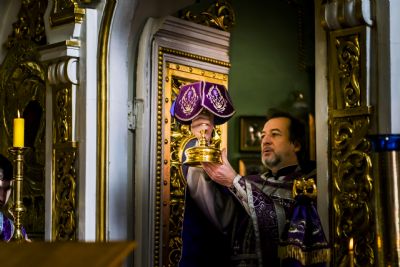 Его Высокопреосвященству сослужили настоятель и клирики собора — протоиерей Иоанн Барсуков, протоиерей Николай Тимофеев, иерей Арсений Леушин. Песнопения исполнял смешанный приходской хор под управлением Натальи Черенковой.