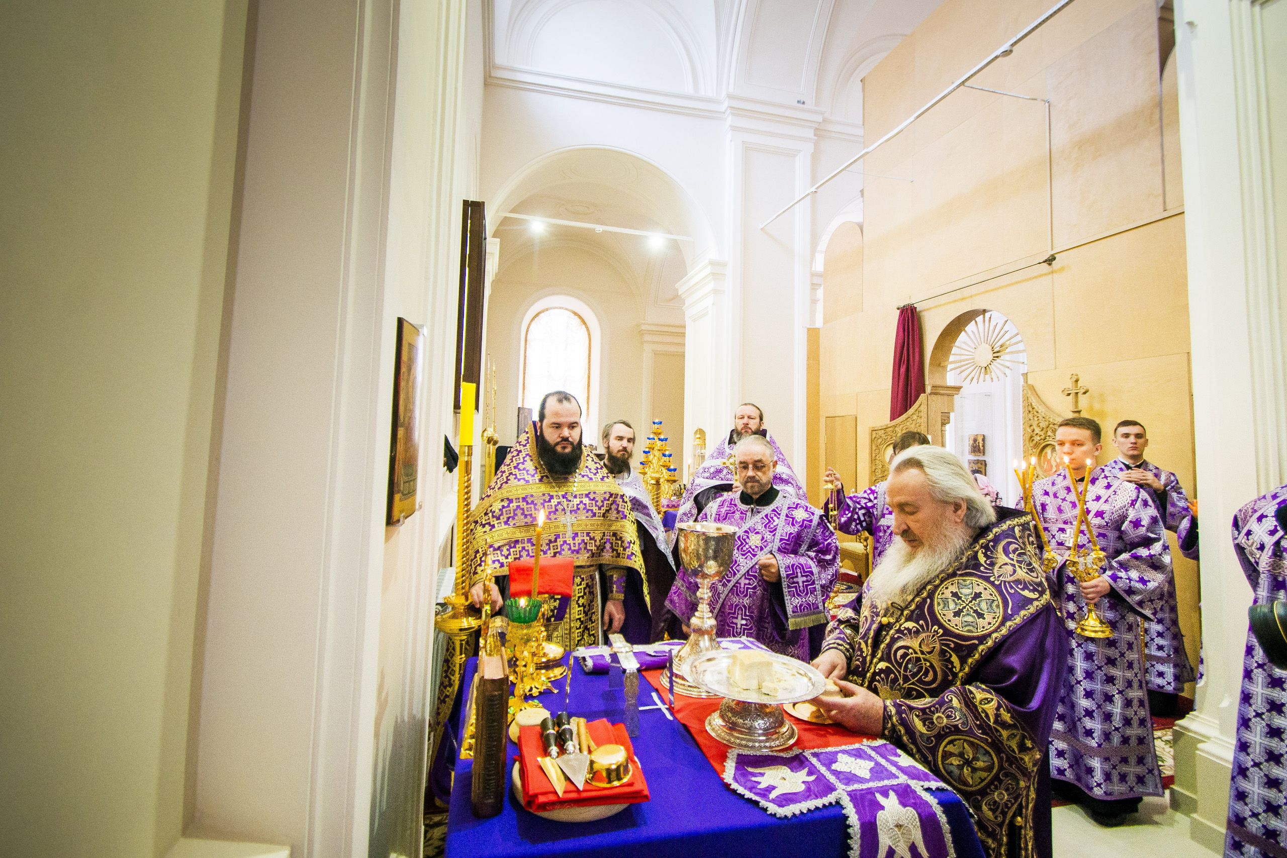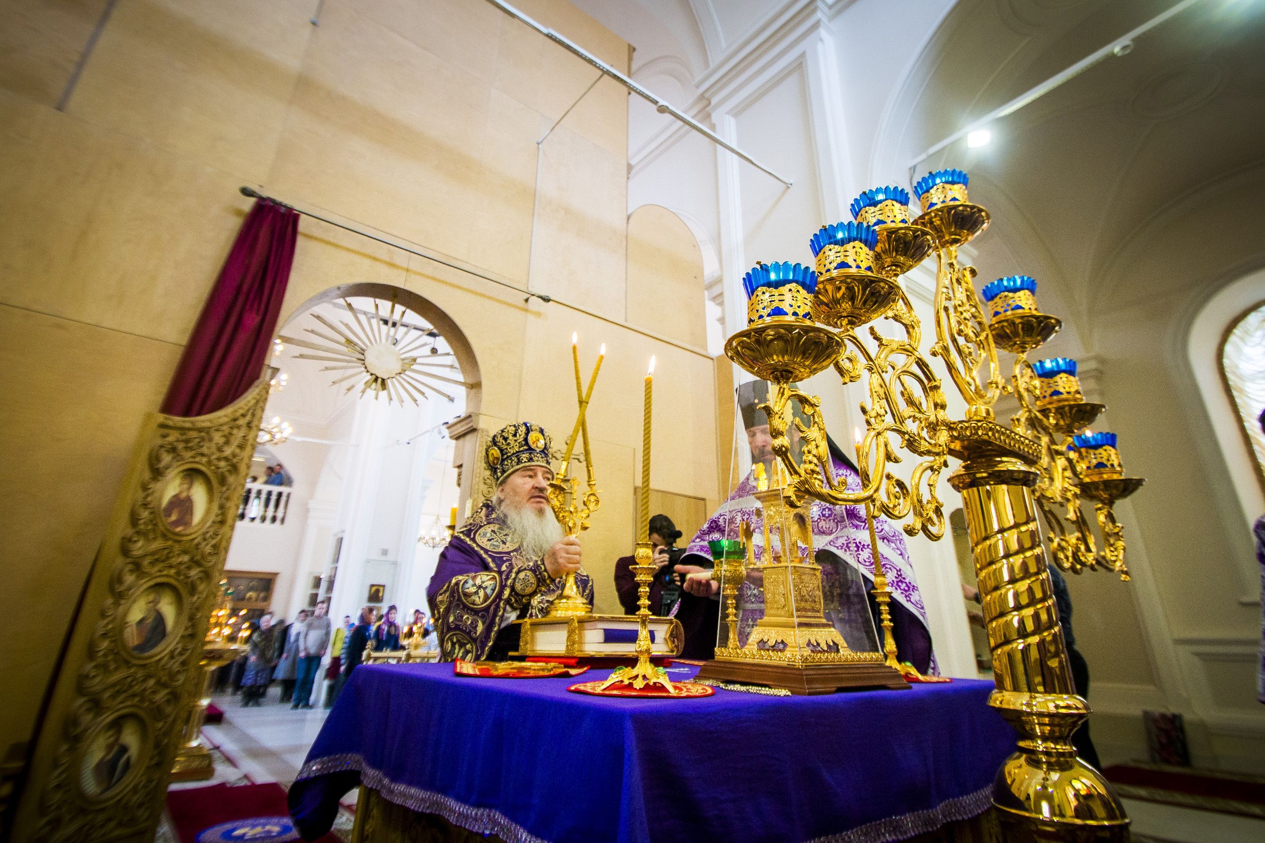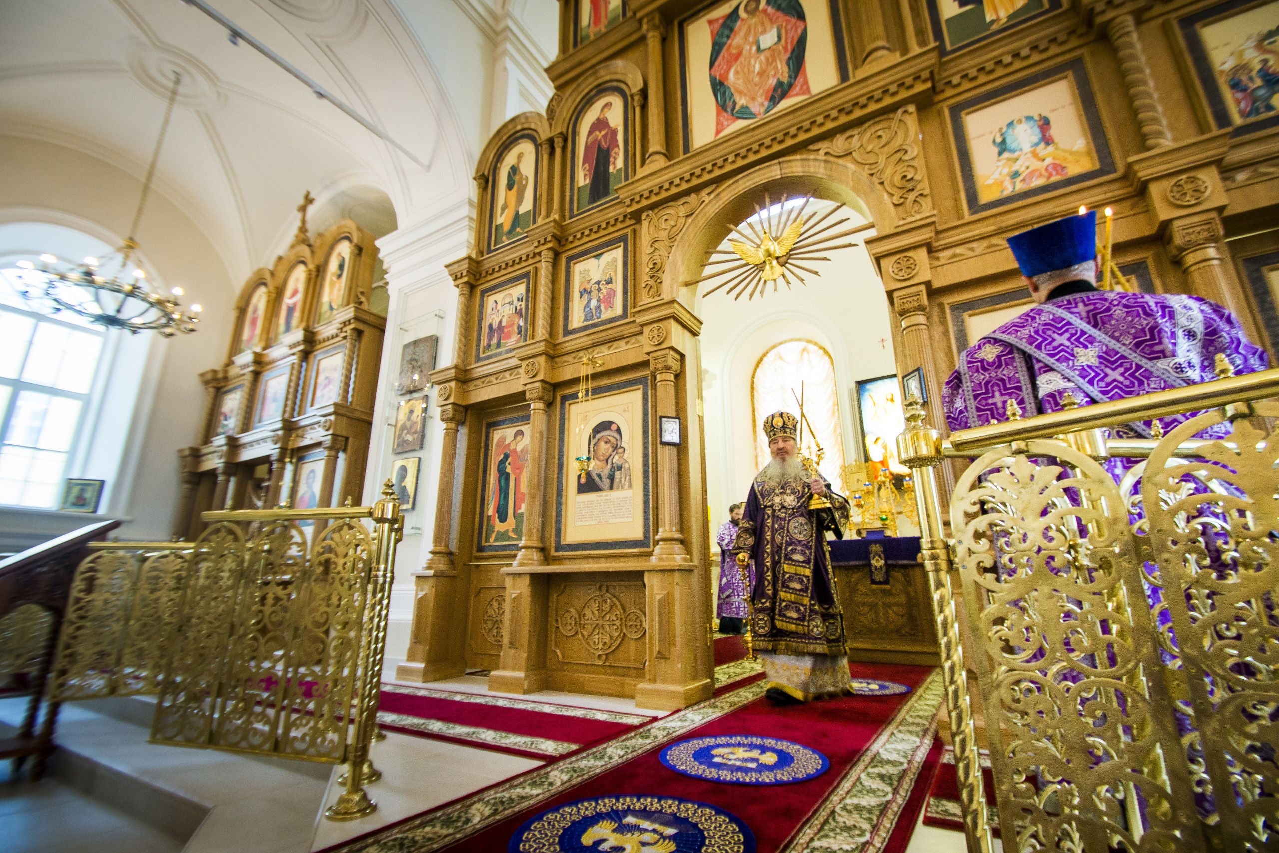 Главе Татарстанской митрополии сослужили наместник Казанско-Богородицкой обители игумен Марк (Виленский), первый проректор Казанской православной духовной семинарии игумен Евфимий (Моисеев), насельник Богородицкого монастыря иеромонах Харалампий (Егоров).