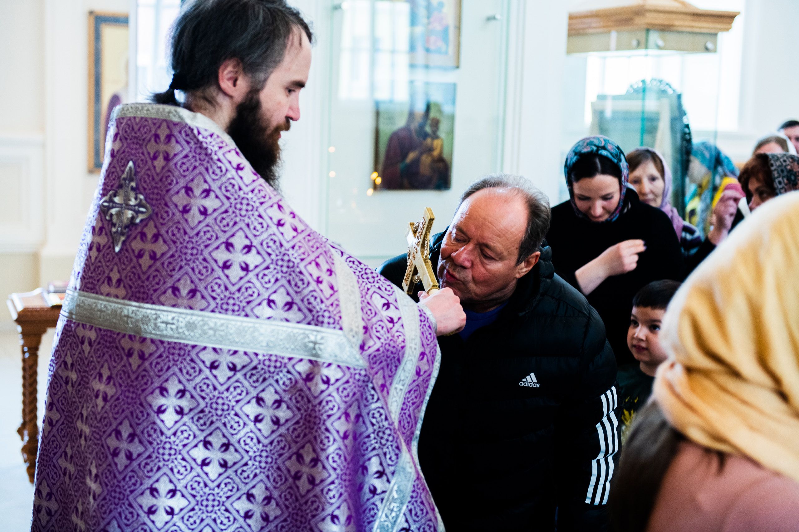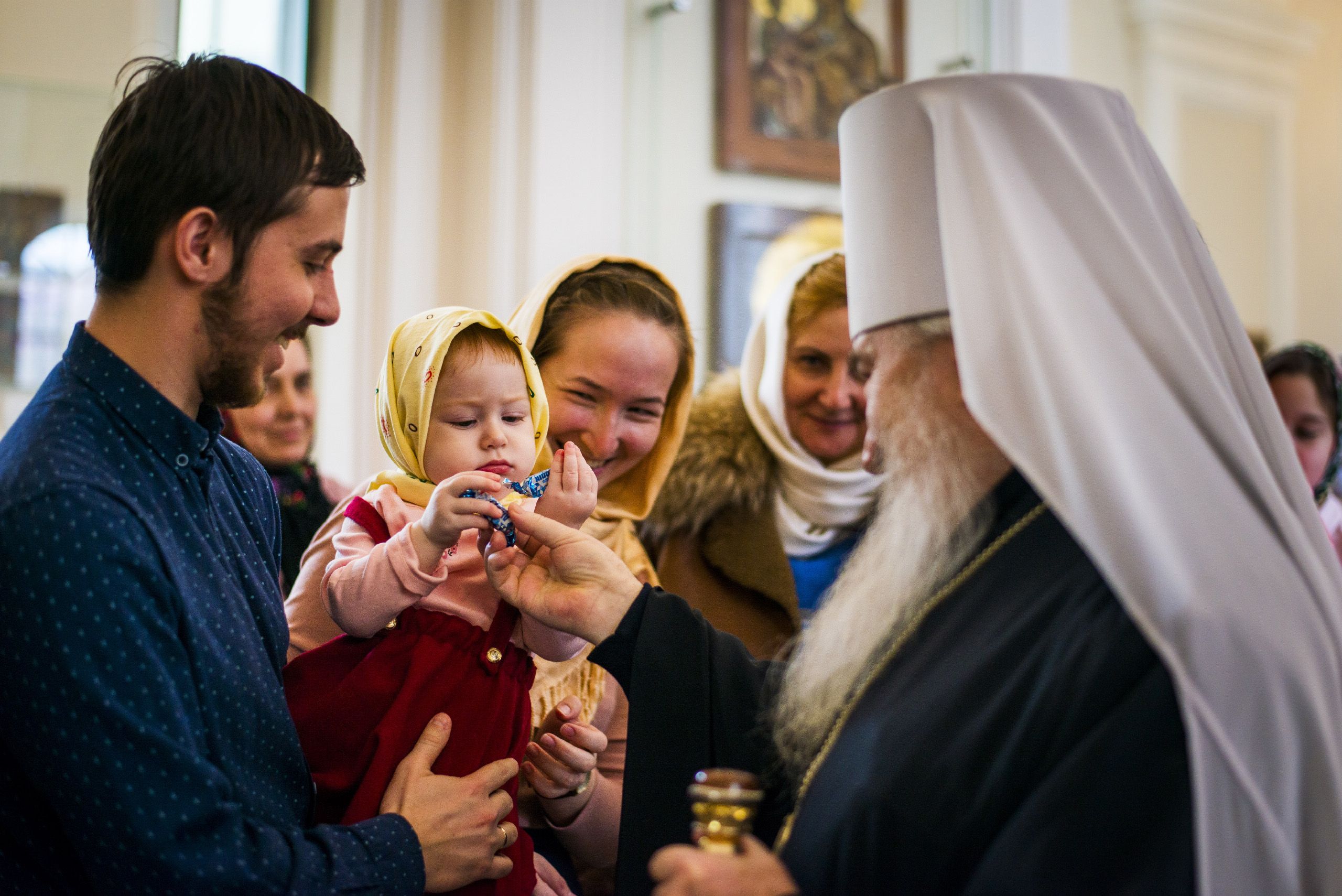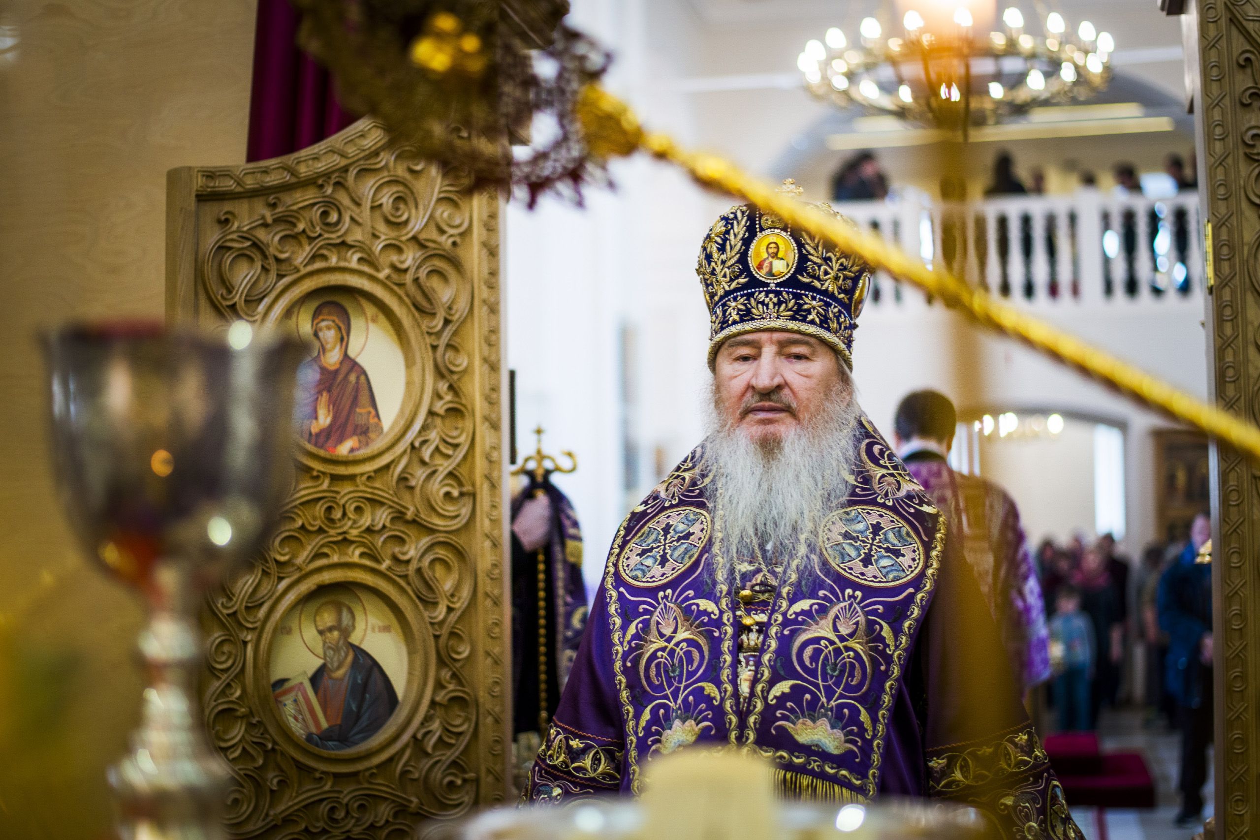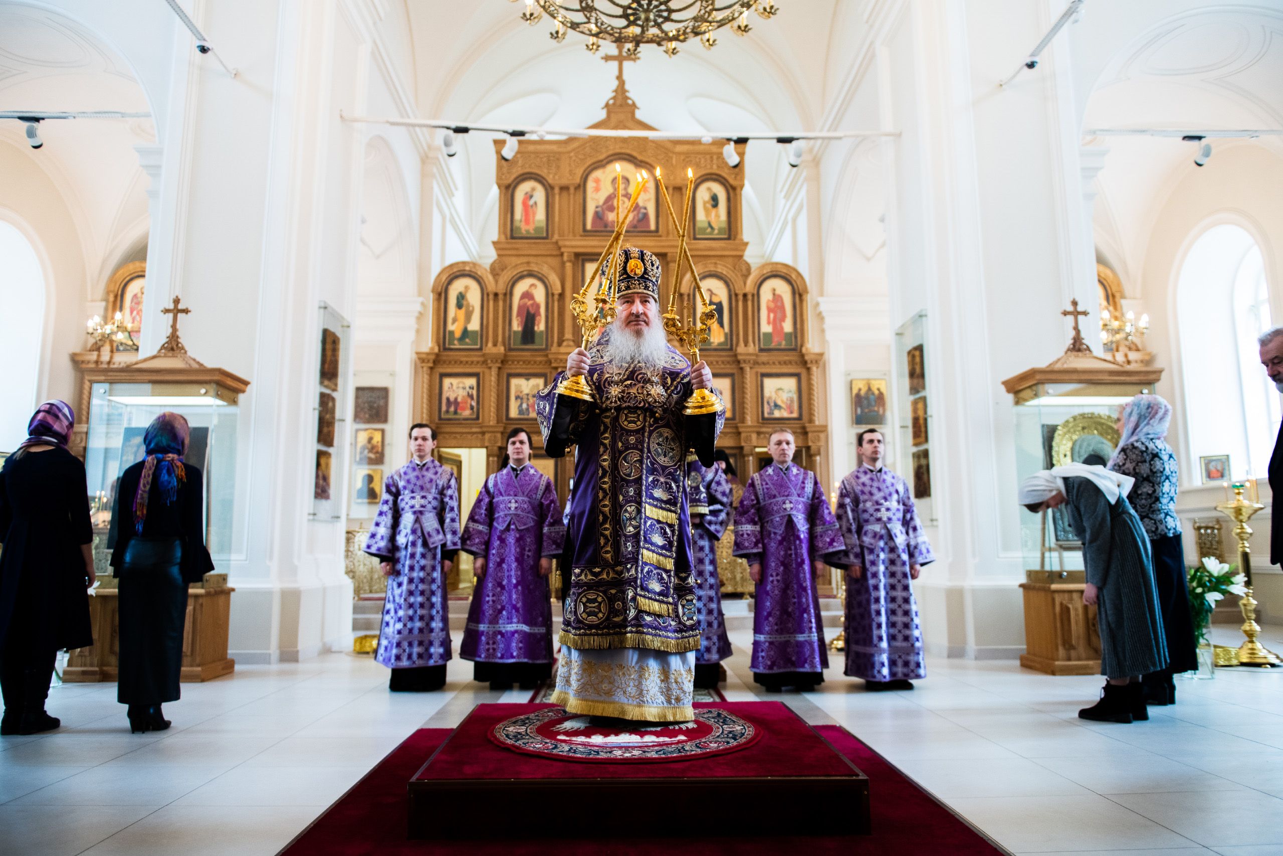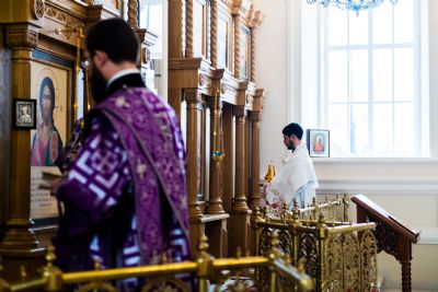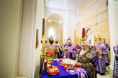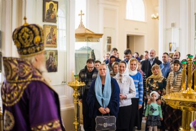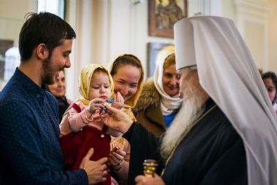 По окончании богослужения архипастырь поздравил всех молившихся с воскресным днем. Глава митрополии приветствовал молодых прихожан Свято-Сергиевского храма. Ктитору Максиму Андрееву владыка Феофан выразил благодарность за труды по возрождению церкви.