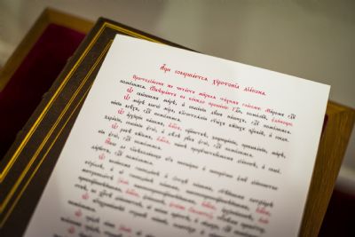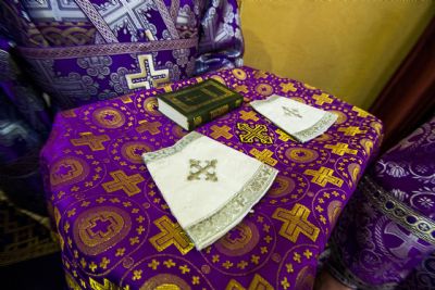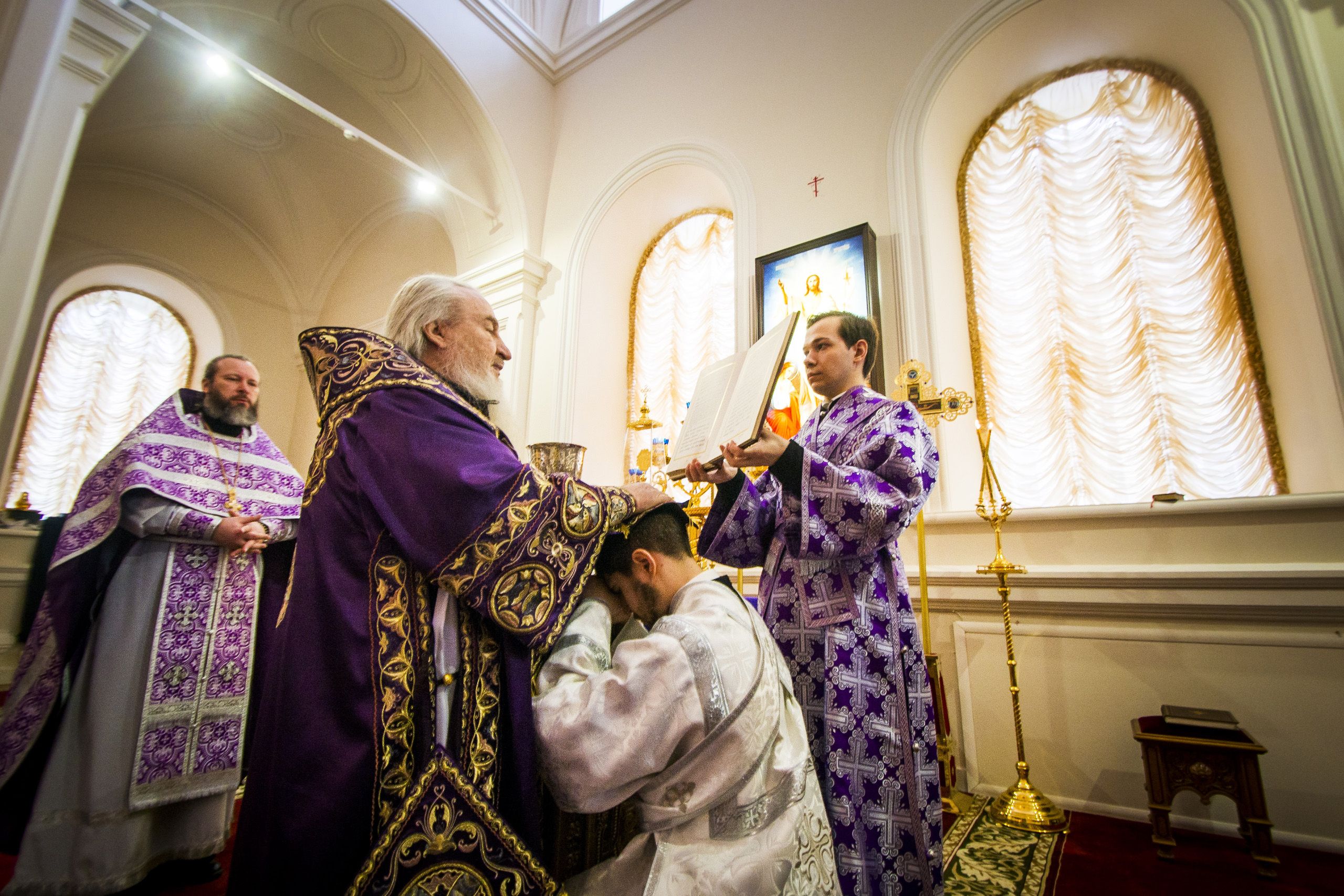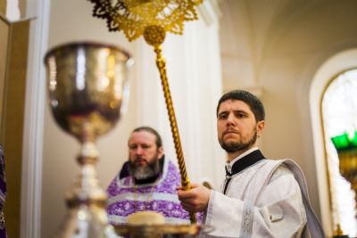 После Евхаристического канона правящий архиерей возглавил диаконскую хиротонию студента III курса пастырско-богословского отделения КазДС Романа Цвигуненко.
