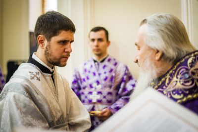 В завершение правящий архиерей поздравил с принятием священного сана диакона Романа. Напомнив о духовной ответственности, Его Высокопреосвященство пожелал новорукоположенному священнослужителю помощи Божией в диаконском служении.