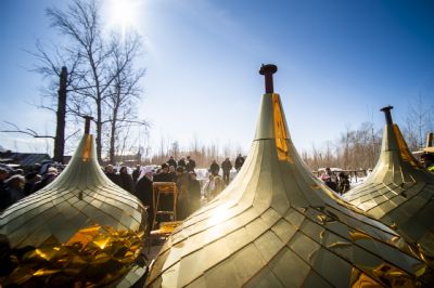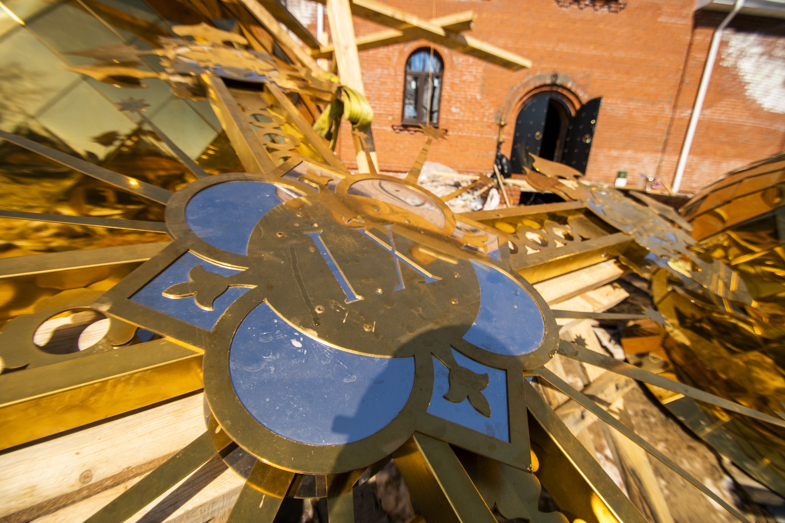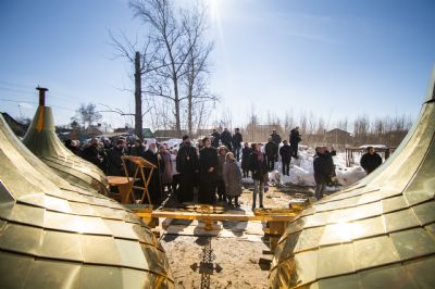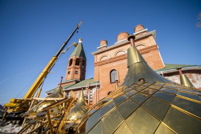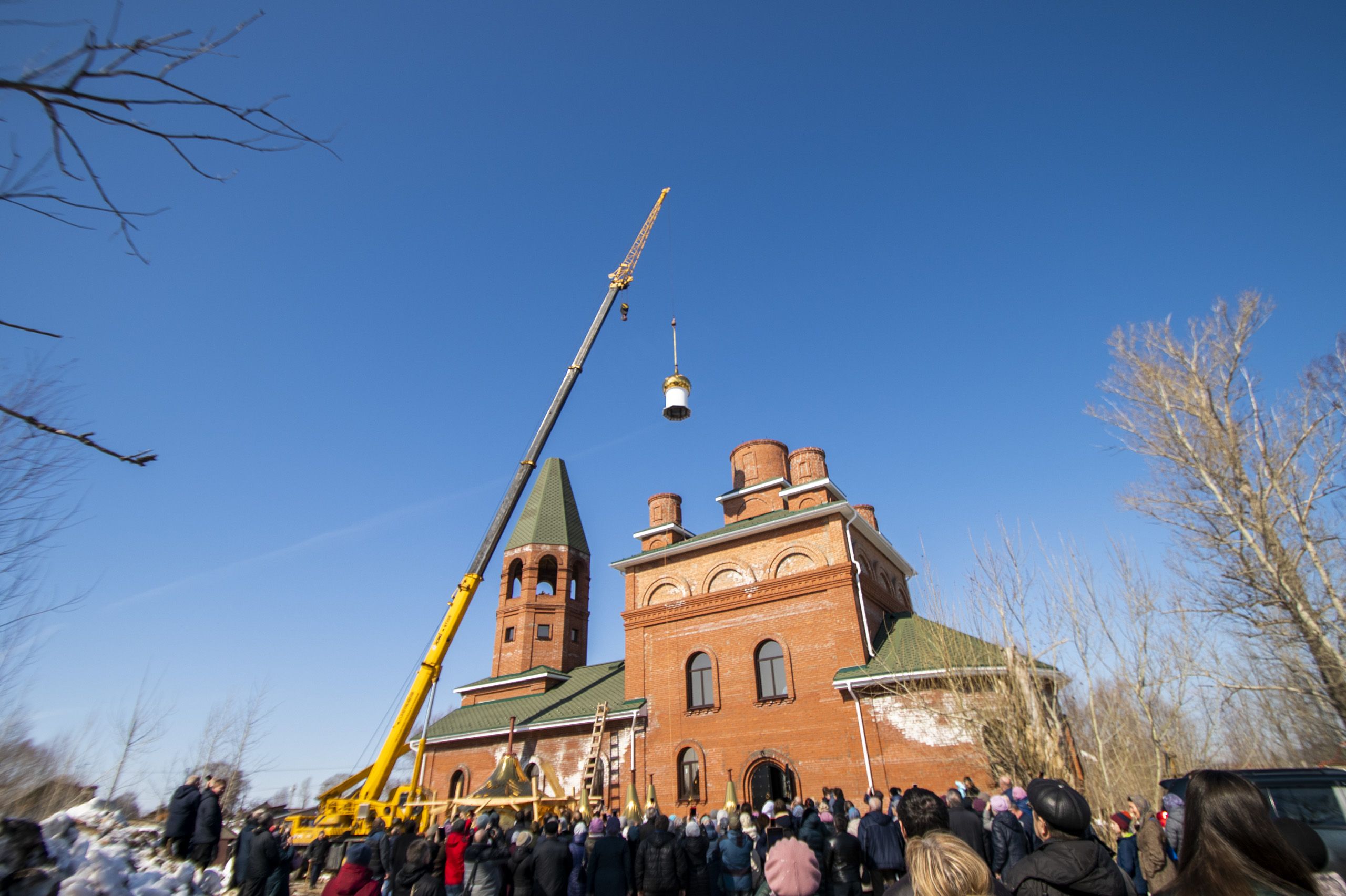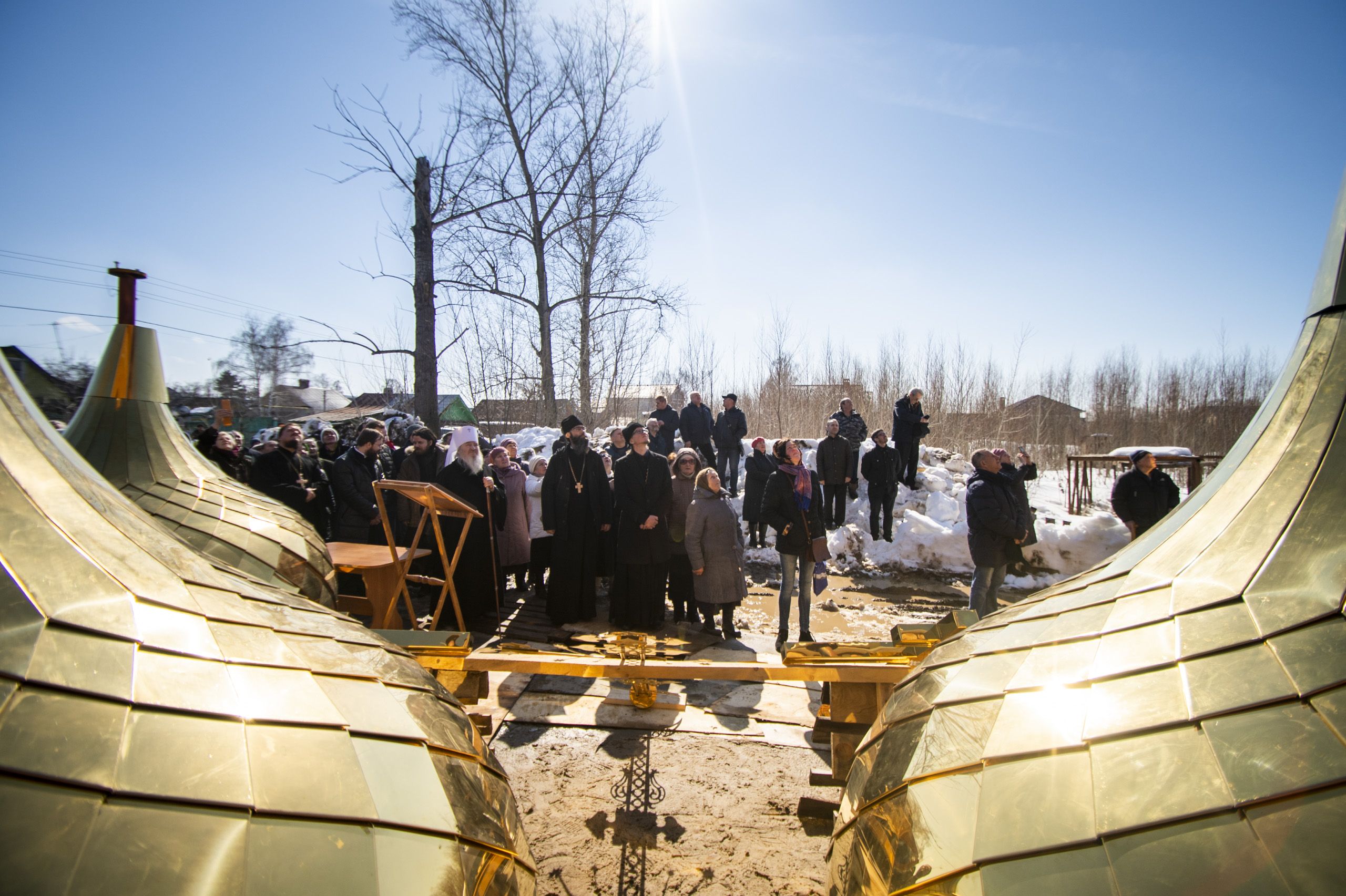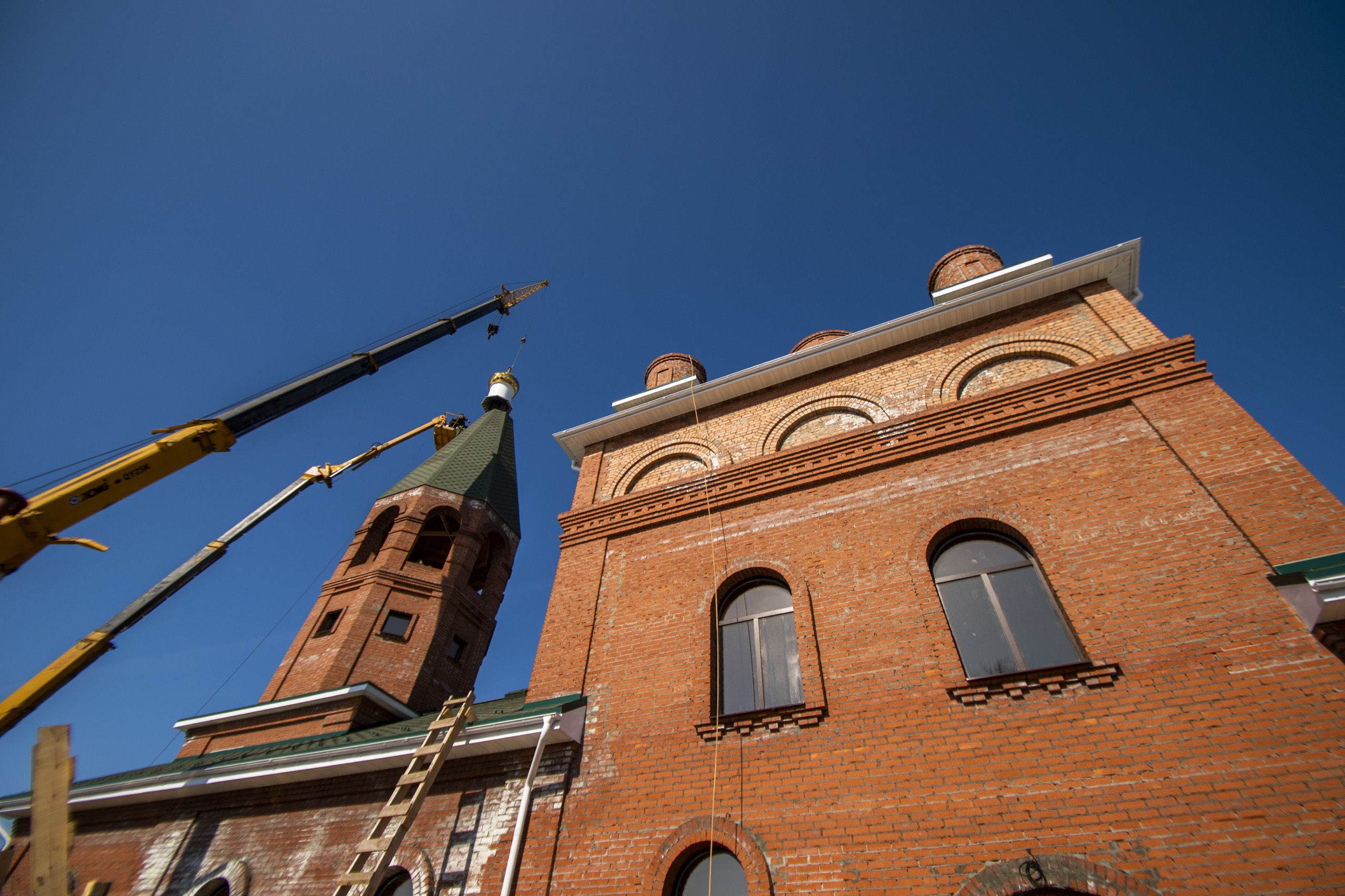 Затем под пение тропаря Животворящему Кресту «Спаси, Господи, люди Твоя…» на Ильинский храм был поднят первый купол с крестом. В течение дня рабочие установили на церковь все шесть куполов.