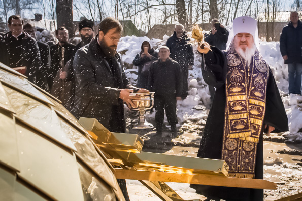 Владыка Феофан также поблагодарил генерального директора казанского завода «Европласт» Сергея Владимировича Князева, с помощью которого изготовлены купола для строящегося храма.