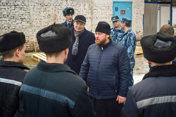 21 марта священнослужитель побывал в Следственном изоляторе № 1 Управления Федеральной службы исполнения наказаний по Республике Татарстан. Руководителя епархиального отдела по тюремному служению сопровождали помощник начальника УФСИН России по РТ Рафаиль Давлеев и начальник изолятора Айрат Валиулов.