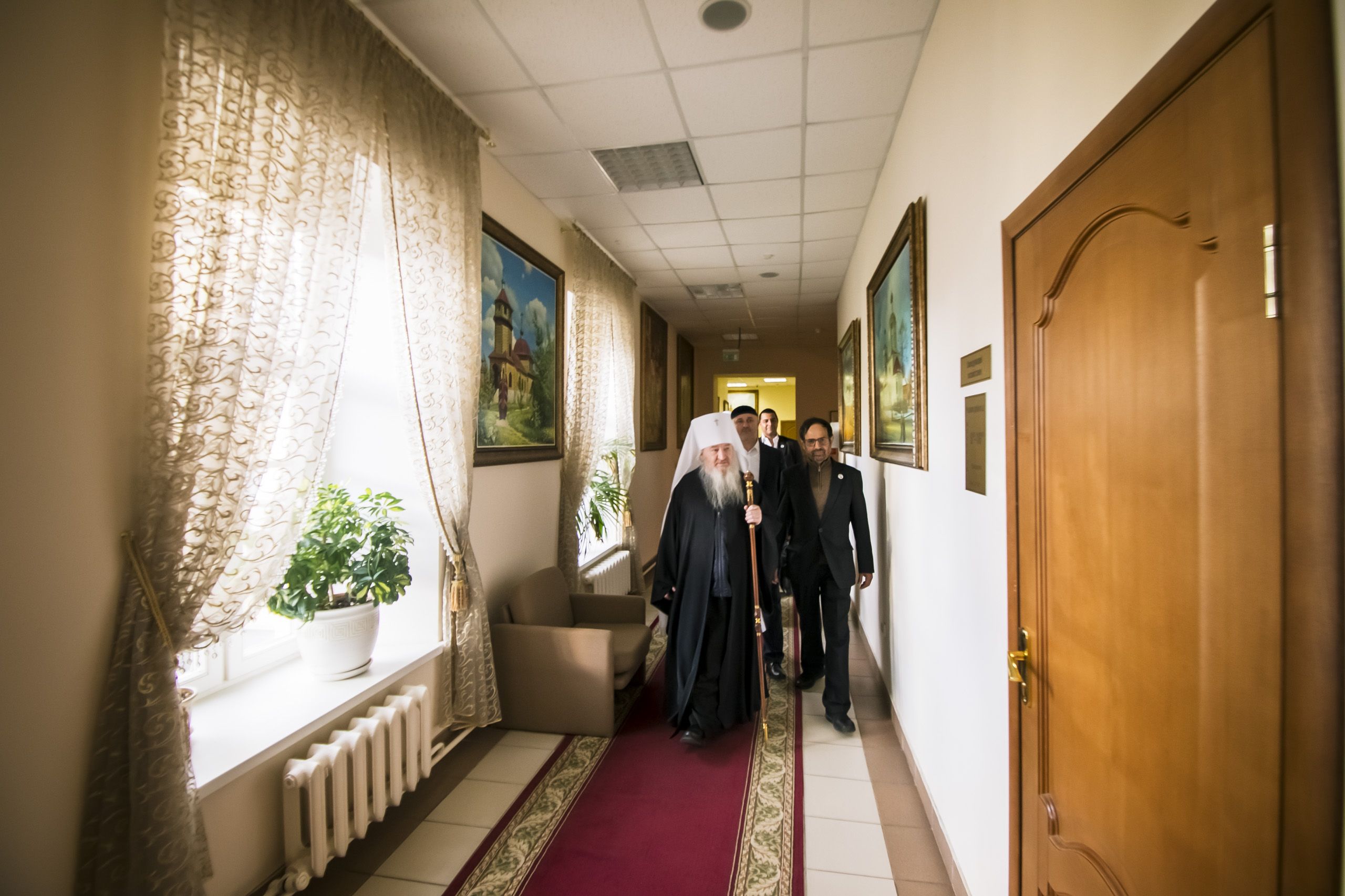 Глава Татарстанской митрополии тепло приветствовал высоких гостей и провел для них экскурсию по архиерейской резиденции с посещением домового храма в честь Воскресения Христова. Встреча продолжилась двусторонним общением.