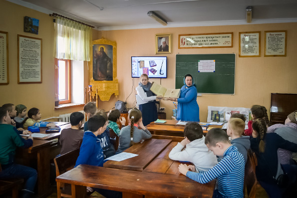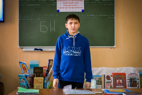 Педагог сообщила, что по случаю Дня православной книги преподаватели организовали для ребят небольшую библиотеку, состоящую из Священного Писания и иллюстрированных житий святых. «Детей заинтересовали эти книги. Мы попросили ребят принести из дома уже прочитанные книги о вере, и сегодня они обменялись друг с другом литературой», — говорит Олеся Александровна.