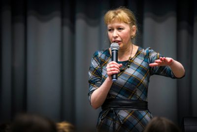 Марина Мусиенко рассказала присутствующим об истории создания картины, ее сюжете, а также представила юных и взрослых актеров, принимавших участие в съемках.