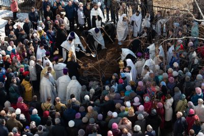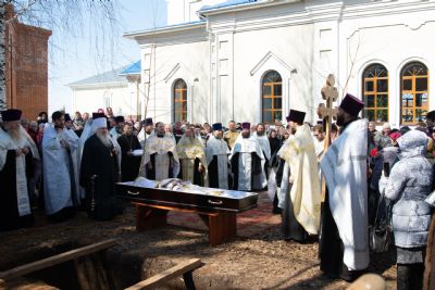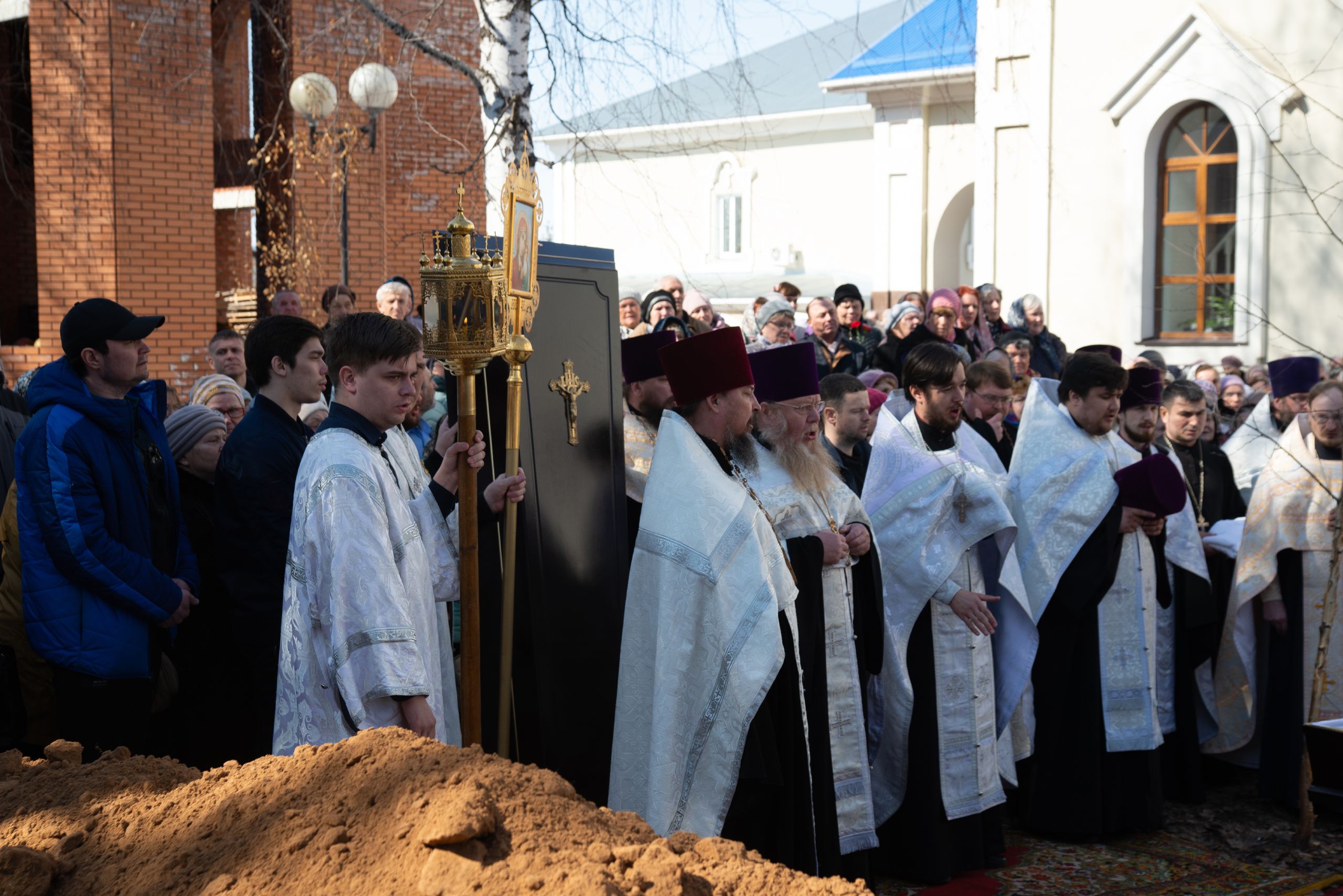 Затем гроб с телом почившего был изнесен духовенством из храма к месту погребения. Глава митрополии совершил заупокойную литию. Протоиерей Георгий был похоронен на южной стороне от построенного его трудами храма в честь Казанской иконы Божией Матери.