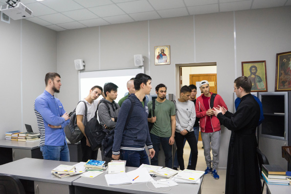 Перед началом турнира студент I курса духовной семинарии Матвей Татаринов провел для гостей небольшую экскурсию по духовной школе.