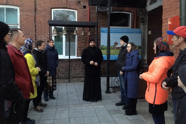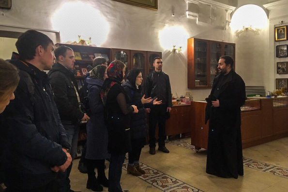 Гостей встретил настоятель церкви иеромонах Вячеслав (Шапоров). Священник ознакомил ребят с историей храма, являвшегося частью больничного комплекса, построенного в конце XIX века по проекту известного московского архитектора Константина Быховского.