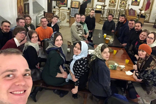 После экскурсии общение православной молодежи и священника продолжилось за чаепитием. Ребята задавали вопросы, касающиеся работы приходской воскресной школы и богослужений, совершаемых в храме. Они интересовались деятельностью епархиального отдела по противодействию наркомании и алкоголизму и реабилитационного центра в Русских Казылях, которым руководит отец Вячеслав. Молодежь также интересовалась причинами возникновения различных пагубных пристрастий и способами борьбы с ними.
