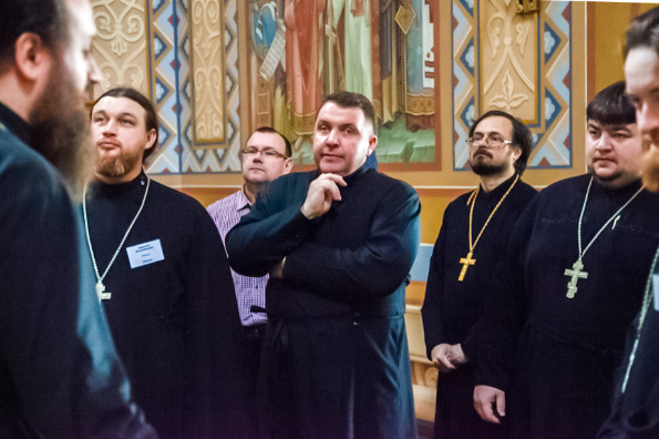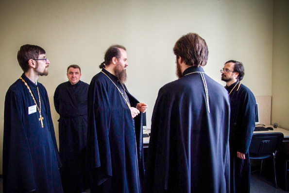 В рамках семинара прошел круглый стол «Опыт подготовки духовных учебных заведений к прохождению государственной аккредитации», модератором которого выступил проректор по учебной работе Санкт-Петербургской духовной академии протоиерей Владимир Хулап. Опытом работы в этом направлении поделились проректор по лицензированию и аккредитации Московской духовной академии Н. В. Леонтьева, первый проректор Саратовской духовной семинарии игумен Варфоломей (Денисов), первый проректор Пензенской духовной семинарии протоиерей Николай Грошев, проректор по учебной работе Смоленской духовной семинарии священник Олег Ребизов и проректор по учебной работе Оренбургской духовной семинарии священник Алексий Колыванов.