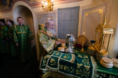 Накануне Его Высокопреосвященство возглавил всенощное бдение в казанском храме в честь великомученицы Параскевы.