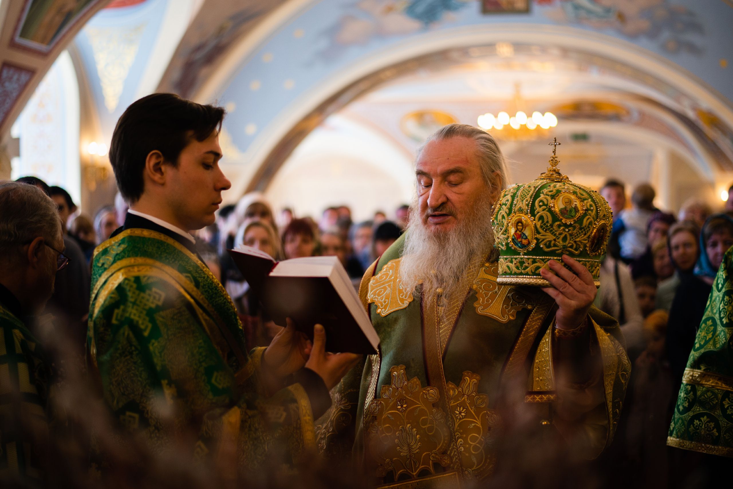 После чтения Евангелия (Ин. 12:1-18) правящий архиерей произнес проповедь.