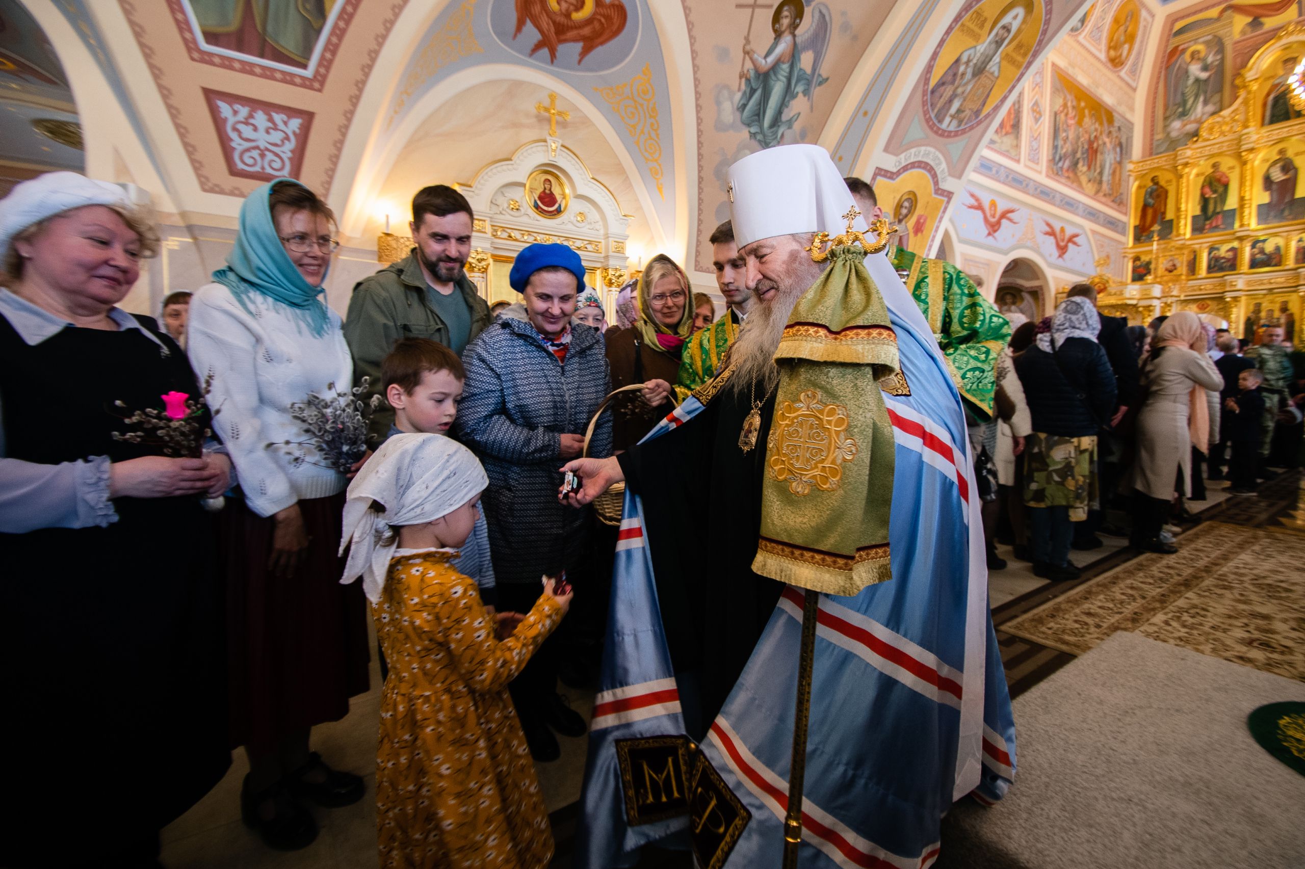 Владыка Феофан поблагодарил отца настоятеля за хорошую организацию приходской жизни и работу православной гимназии. Его Высокопреосвященство преподал верующим архипастырское благословение, а присутствовавшим за богослужением детям раздал сладкие гостинцы.