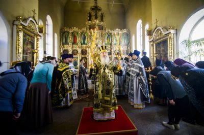После отпуста правящий архиерей обратился к духовенству, воспитанникам семинарии и прихожанам храма с поучительным словом.