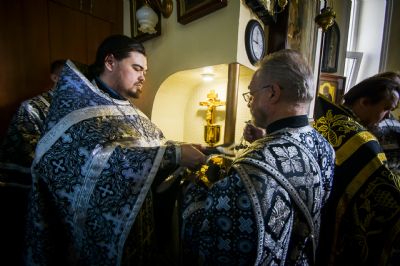 Его Высокопреосвященству сослужили и.о. проректора КазДС протоиерей Алексий Колчерин, проректор по административно-хозяйственной части протоиерей Алексий Державин, заведующий регентским отделением иерей Константин Колыганов, проректор по учебной работе иерей Александр Ермолин, проректор по воспитательной работе иеромонах Кирилл (Забавнов), учащиеся семинарии в священном сане.