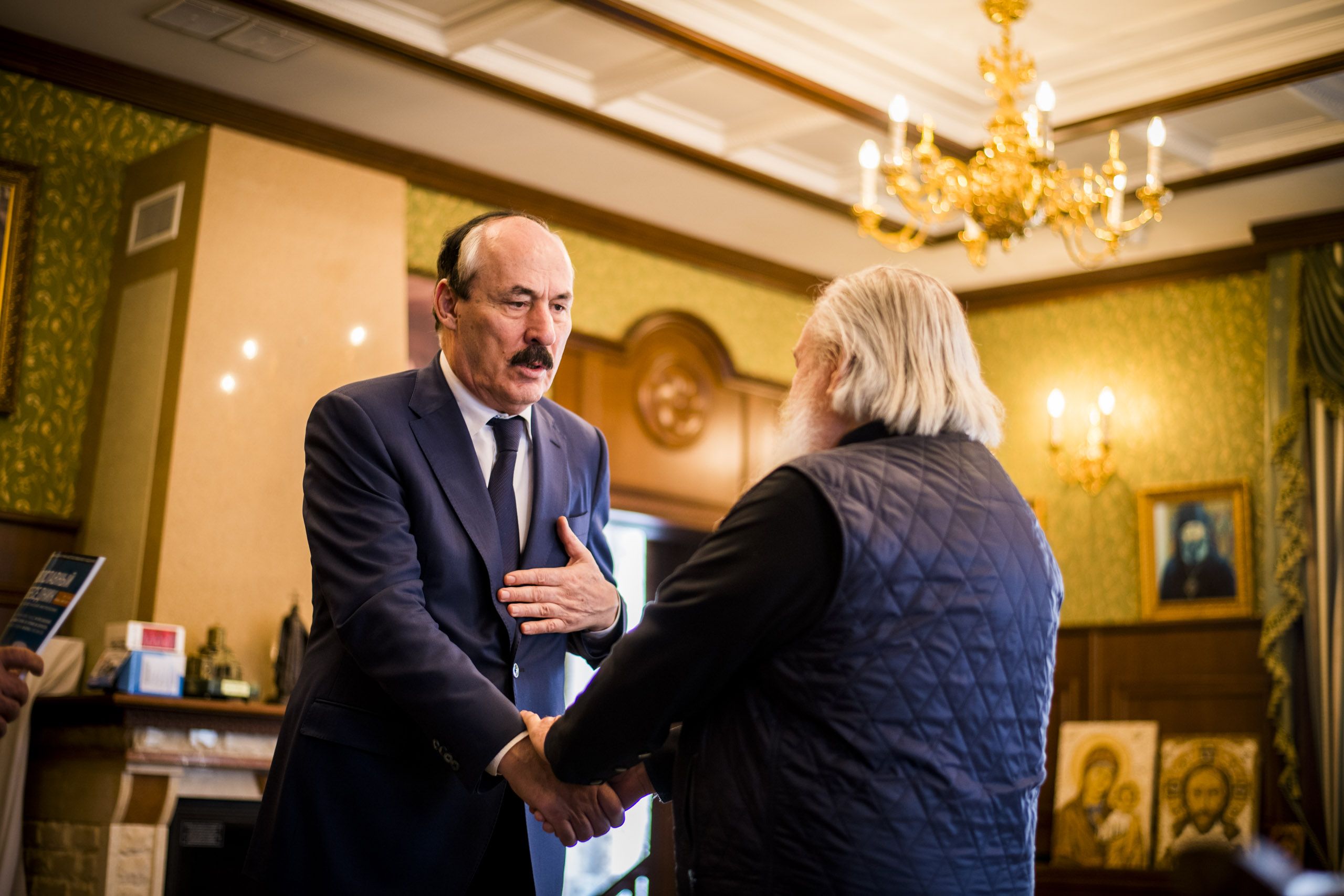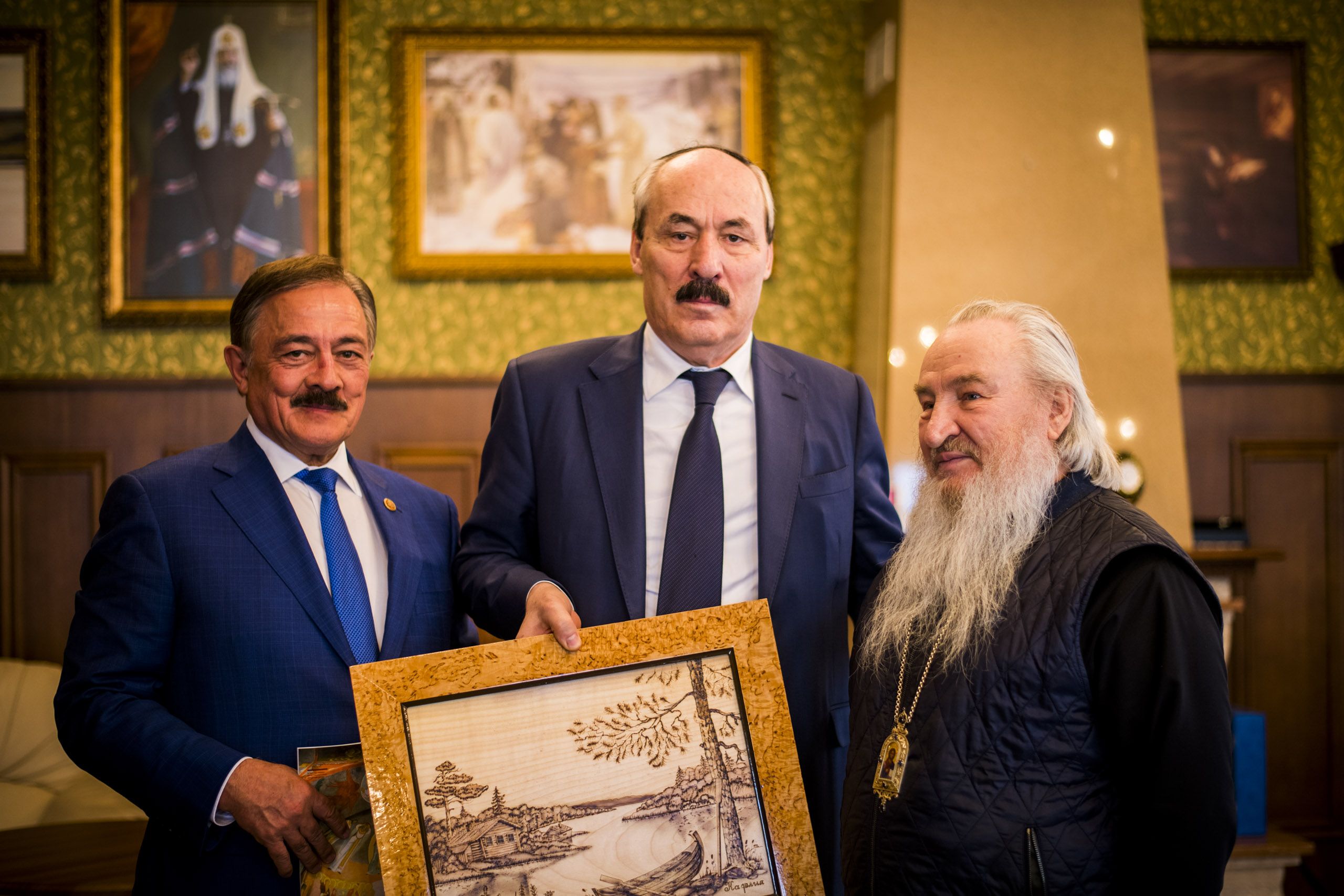 Рамазан Гаджимурадович, поблагодарив владыку Феофана за прием, выразил признательность за совместную работу на Северном Кавказе в годы, когда Его Высокопреосвященство был правящим архиереем Ставропольско-Владикавказской епархии. Экс-глава Республики Дагестан отметил, что труды по укреплению позиций Православной Церкви в северокавказском регионе, которые понес в своей время митрополит Феофан, ныне дают свои плоды. Продолжают строится новые и восстанавливаться разрушенные храмы и монастыри, сохраняется высокий уровень религиозного просвещения, развивается направленный на утверждение мира и согласия диалог между православными и мусульманами.