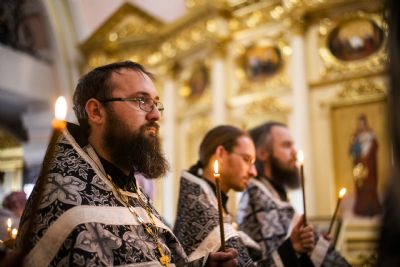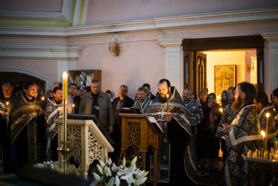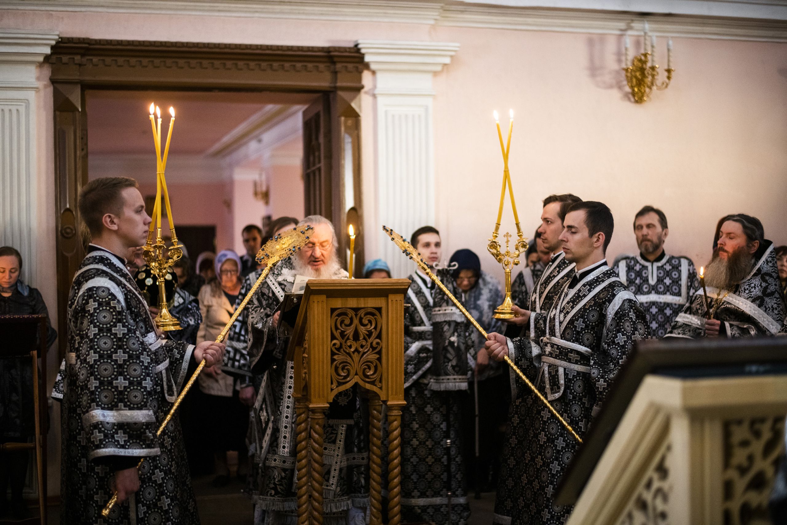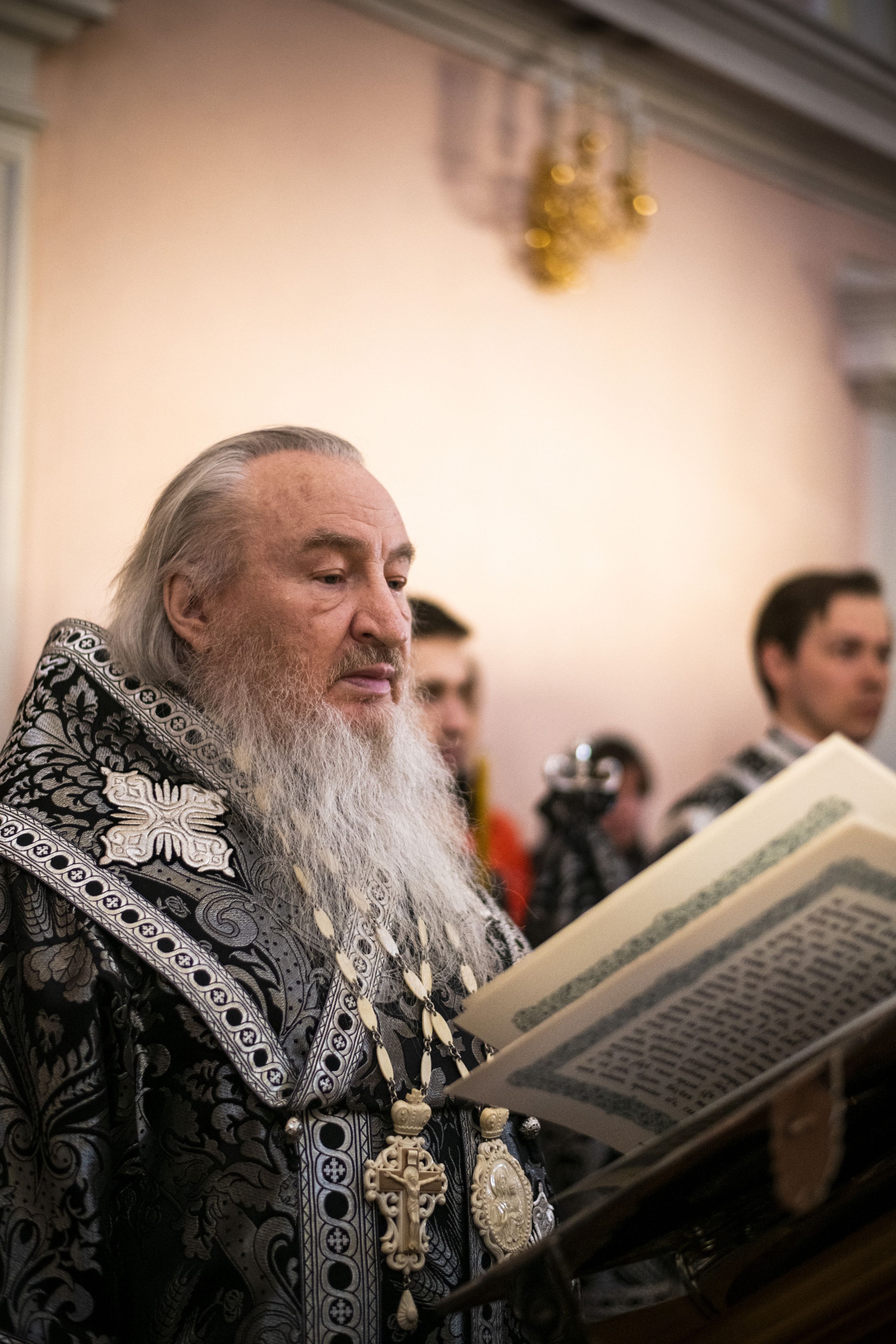 Богослужебные песнопения исполнил архиерейский мужской хор под руководством Дениса Рогова.