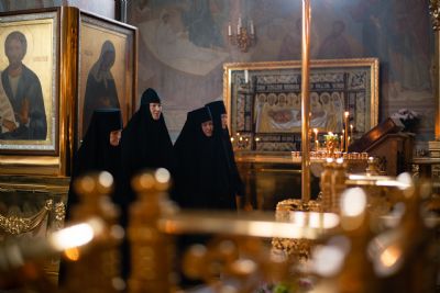 Песнопения исполнил смешанный хор Казанско-Богородицкого монастыря под управлением монахини Амвросии (Кочережкиной).