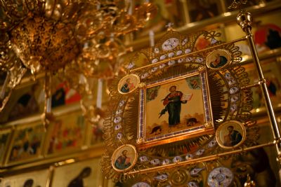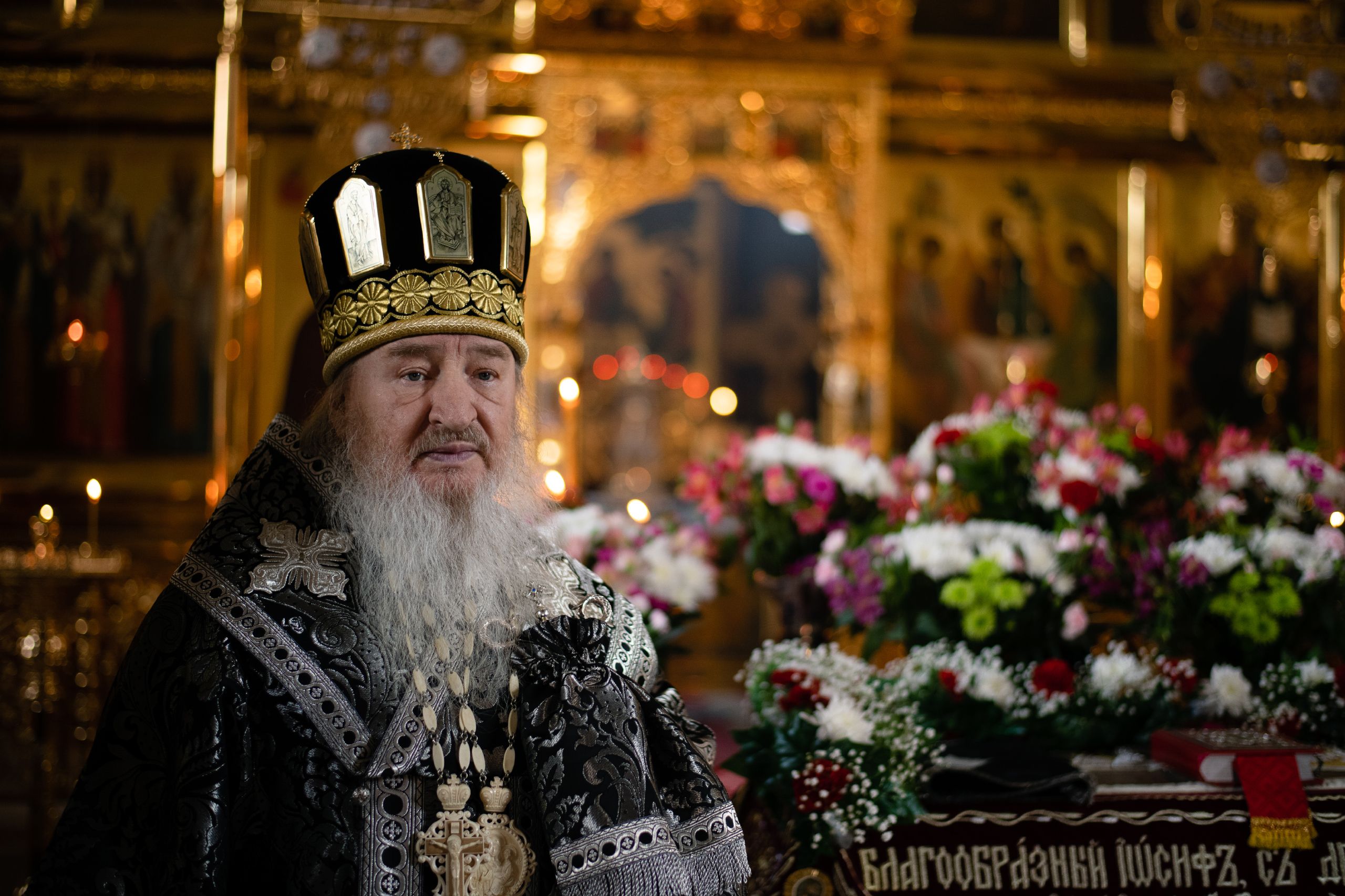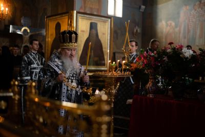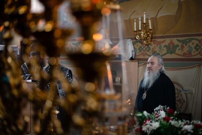 Его Высокопреосвященству сослужили клирики Зилантовой обители протоиерей Сергий Дятлов и иерей Владимир Луценко.