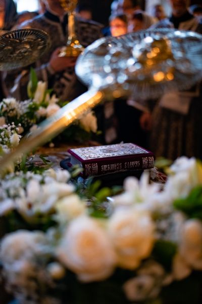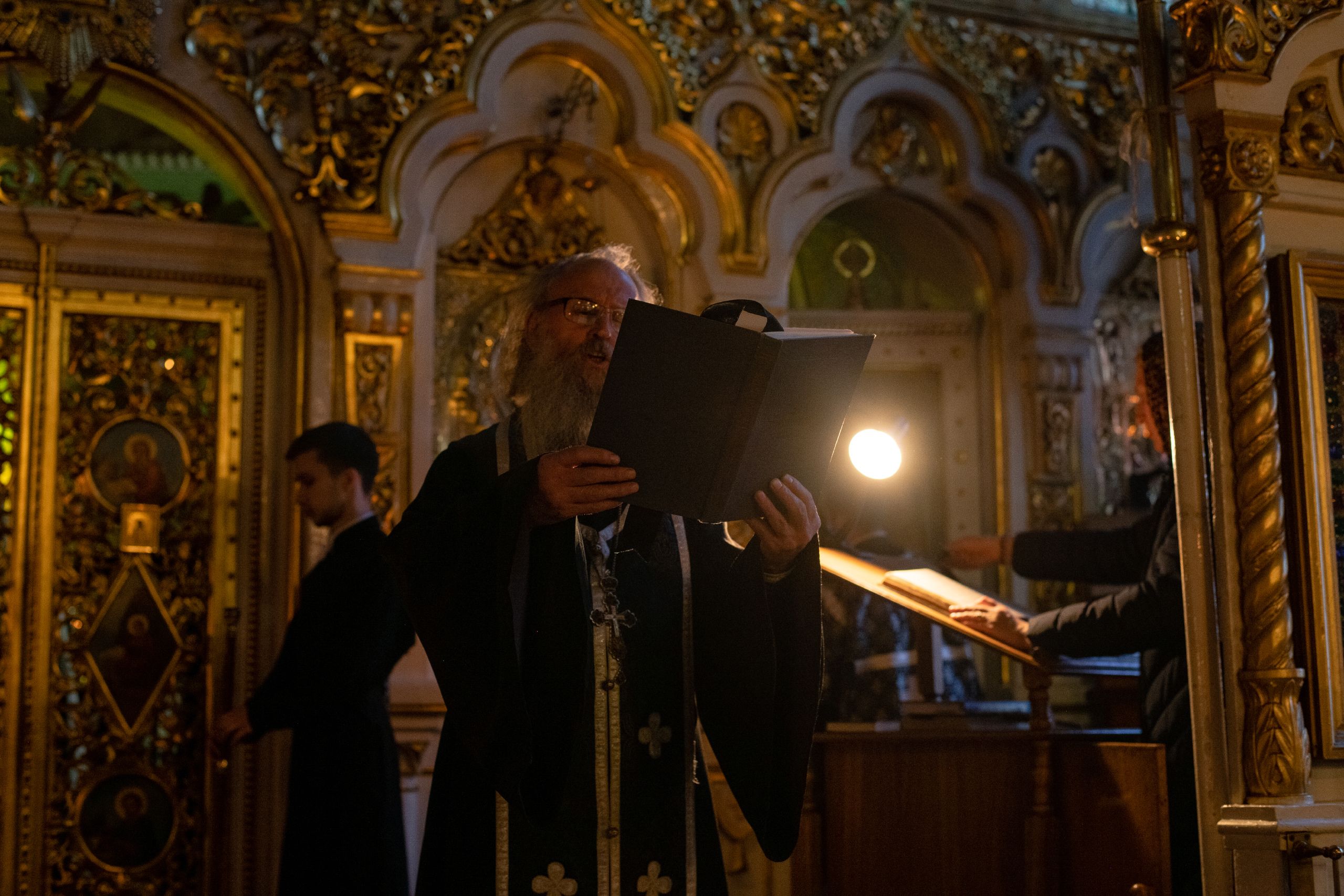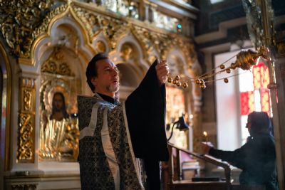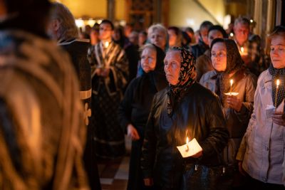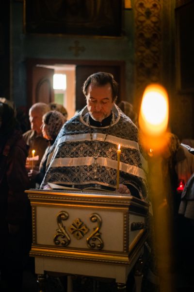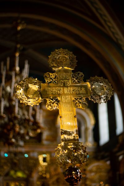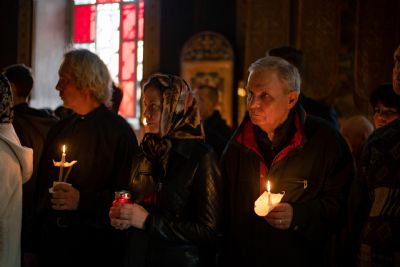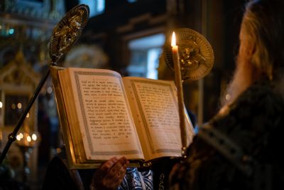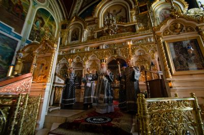 Песнопения вечернего богослужения исполнил смешанный хор собора под управлением Николая Беляева.