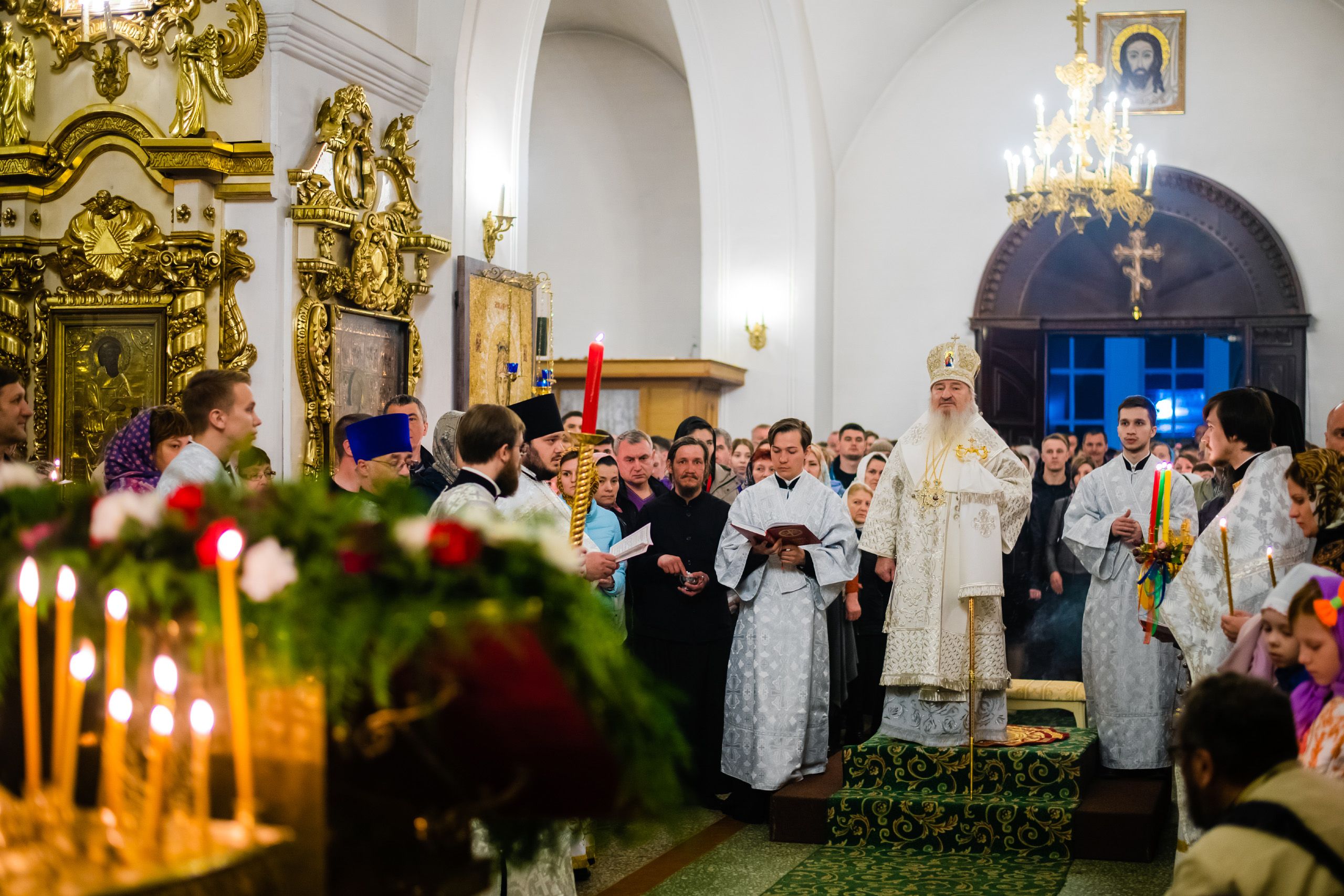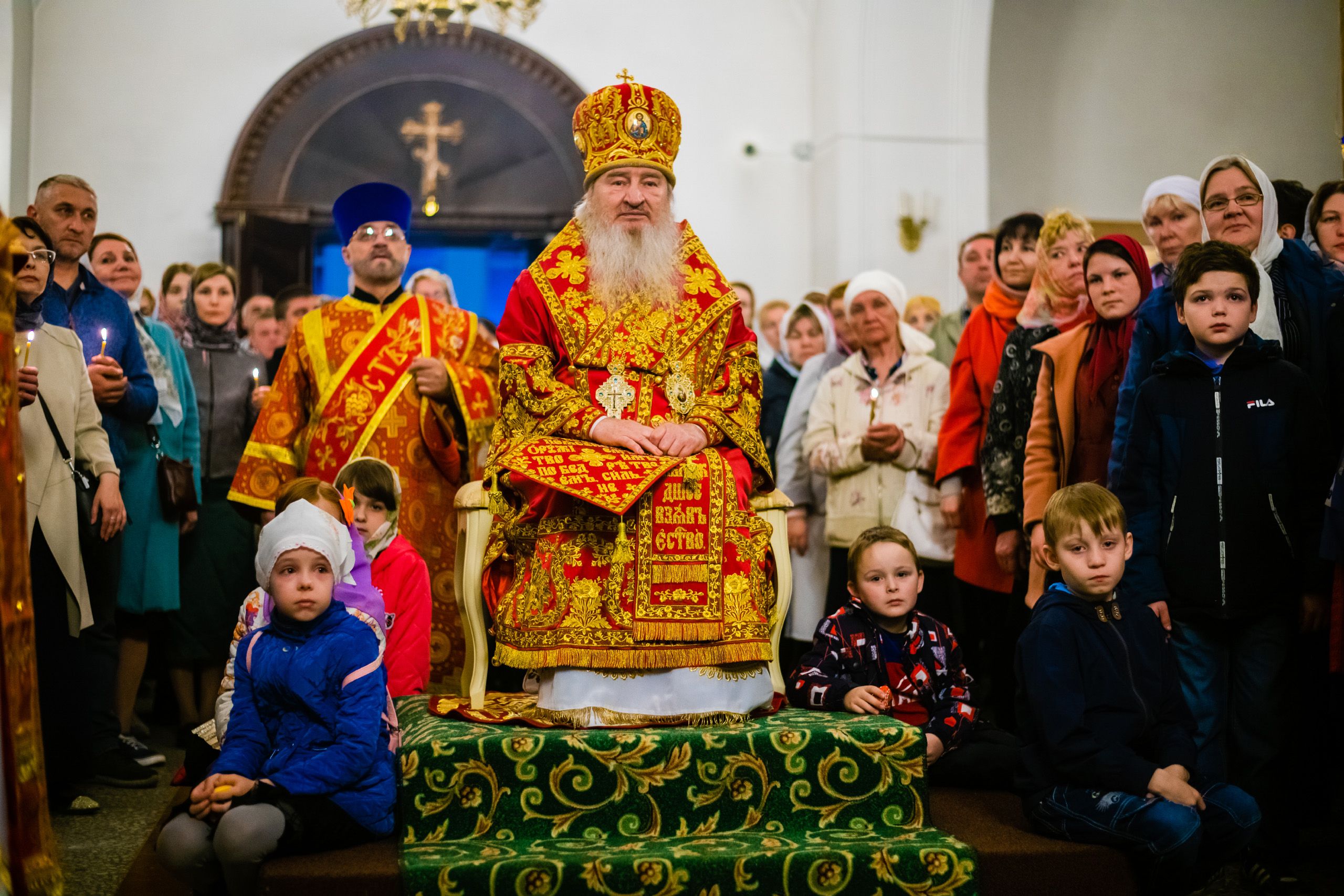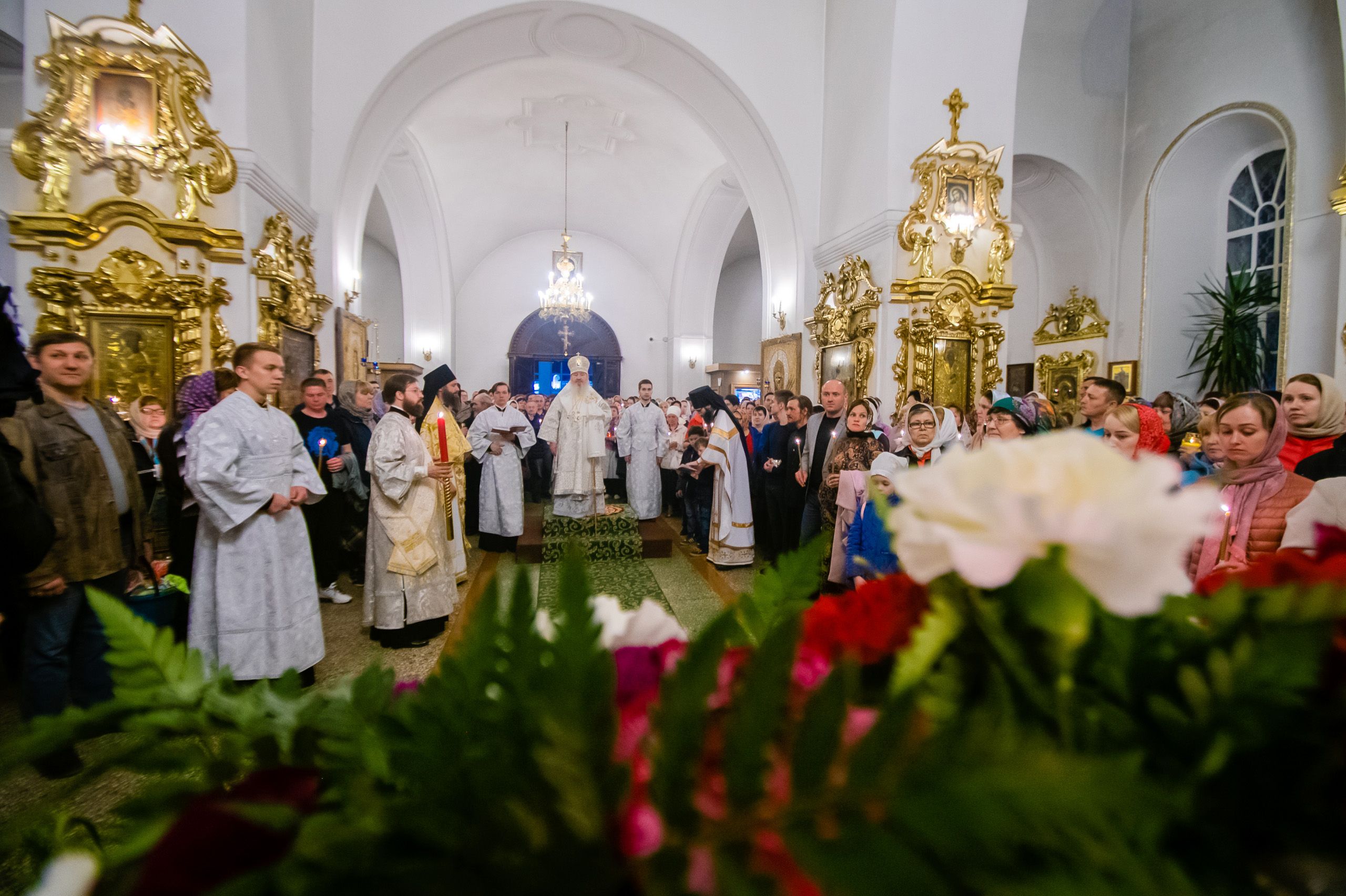 За торжественным пасхальным богослужением Его Высокопреосвященству сослужили наместник Раифского Богородицкого мужского монастыря игумен Гавриил (Рожнов) с братией обители в священном сане, настоятель Введенского Кизического мужского монастыря игумен Пимен (Ивентьев), проректор по воспитательной части Казанской православной духовной семинарии иеромонах Кирилл (Забавнов).