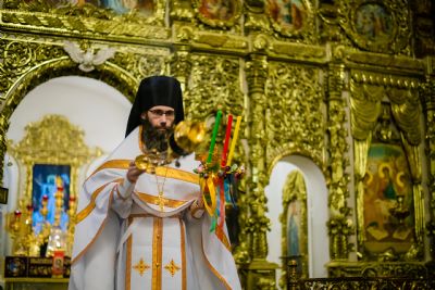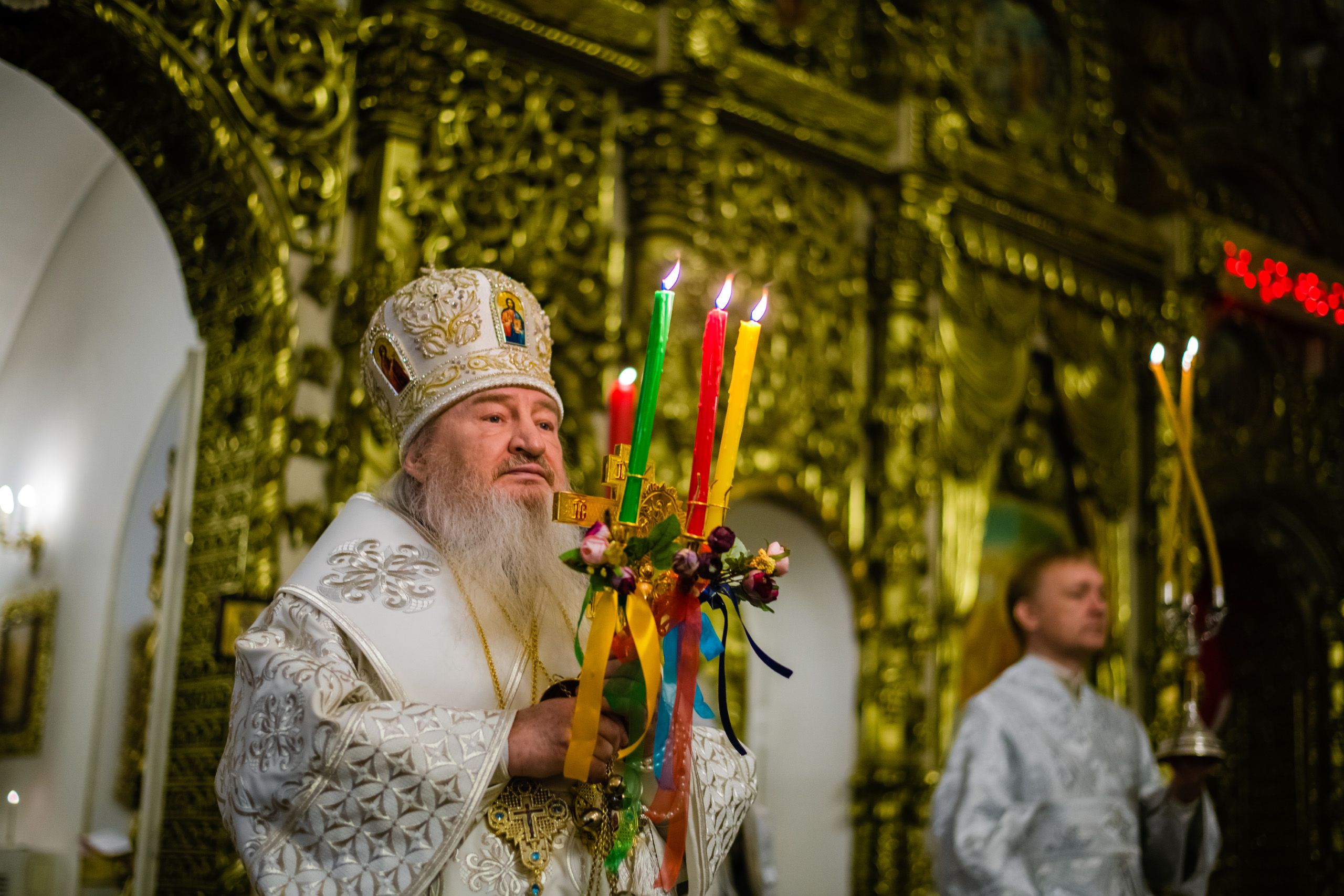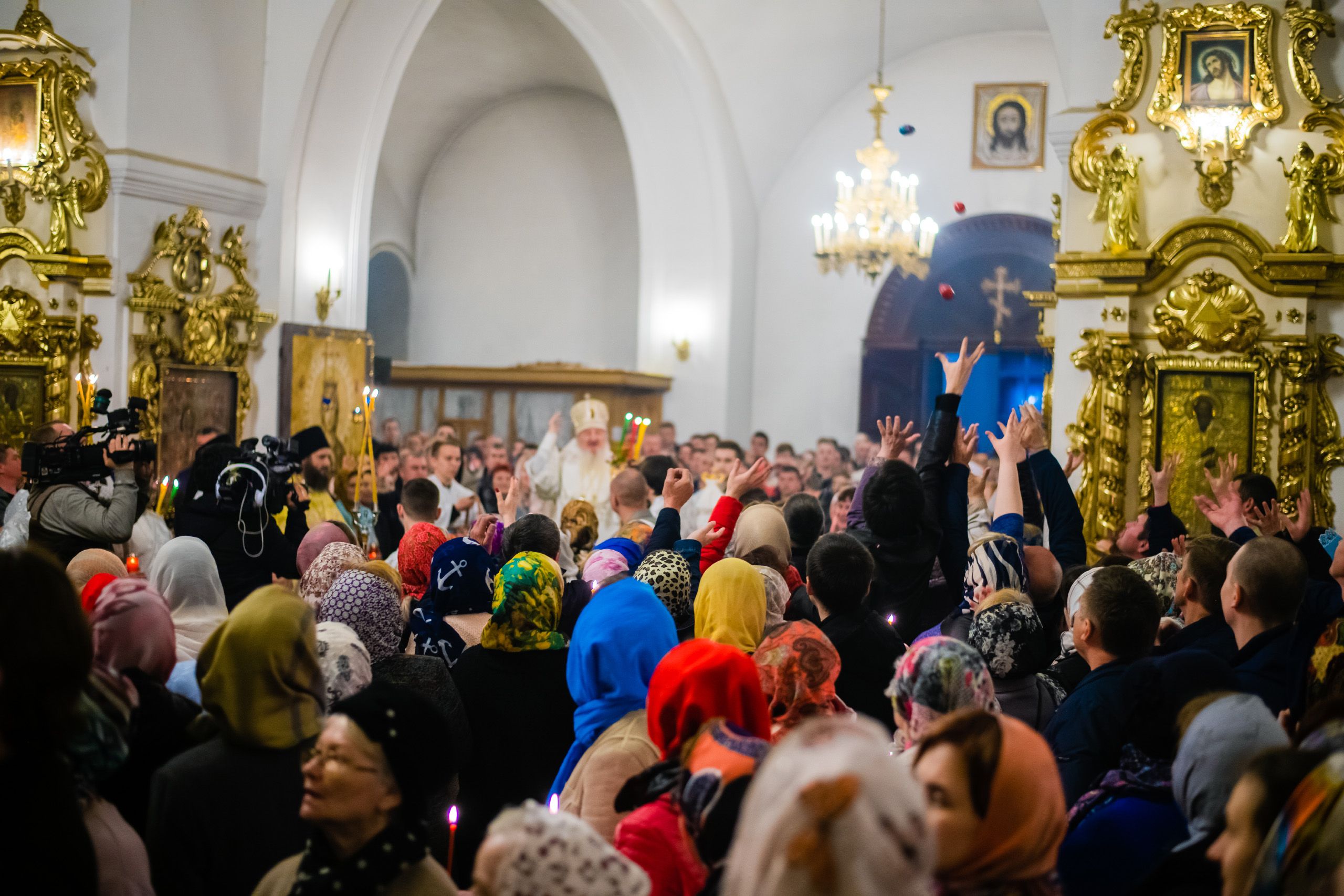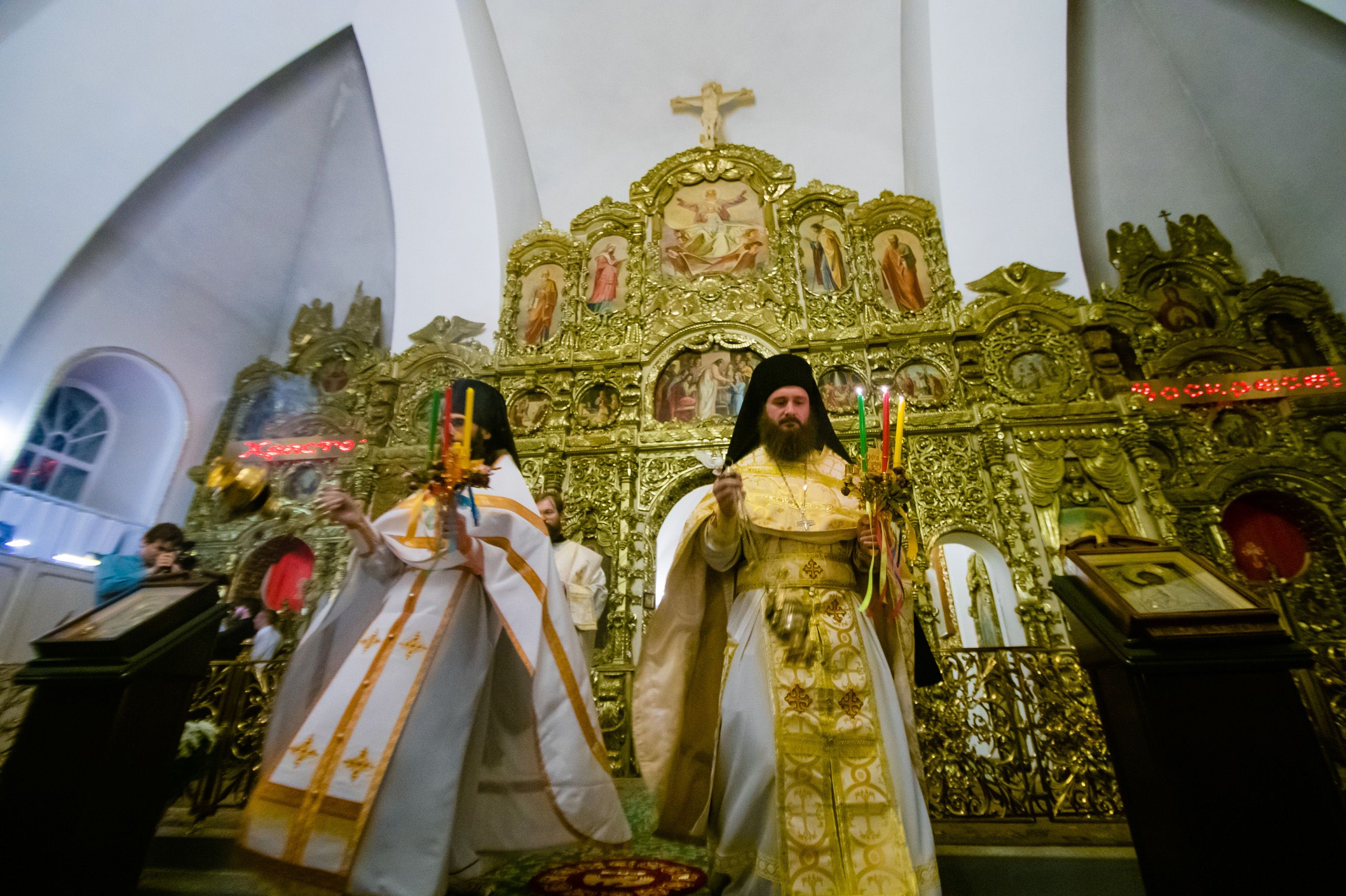За торжественным пасхальным богослужением Его Высокопреосвященству сослужили наместник Раифского Богородицкого мужского монастыря игумен Гавриил (Рожнов) с братией обители в священном сане, настоятель Введенского Кизического мужского монастыря игумен Пимен (Ивентьев), проректор по воспитательной части Казанской православной духовной семинарии иеромонах Кирилл (Забавнов).